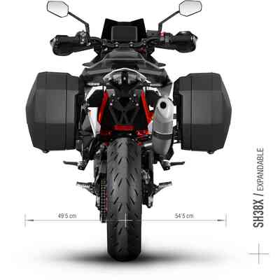 • Son couvercle en aluminium garantit une grande rigidité avec un poids minimal. Son design et sa technologie de pointe lui ont permis de remporter le prestigieux Reddot Design Award 2024., Idéal pour tout utilisateur régulier de moto qui apprécie de disposer d'une capacité de chargement supplémentaire à tout moment. Ou pour tous les motards qui souhaitent réduire la largeur de leur moto avec l'équipement installé et améliorer la sécurité et les sensations de conduite lors de leurs déplacements en moto. • Cadre à double canal scellé en caoutchoc pour garantir la résistance à l’eau. De même, le système de fermeture « Double Locking System » sert à le verrouiller sur la fixation et à empêcher, en même temps, l'accès à l'intérieur de la valise. Moto Expert vous présente les valises latérales extensibles SH38X Aluminium Shad D0B38200: SHAD, marque leader en matière de bagages pour moto et pionniers en matière d'extensibilité, présente un ensemble innovant de valises latérales EXTENSIBLES adaptables à la dernière génération de motos haut de gamme 100% conçu et fabriqué à Barcelone • Compatible avec le système 3P (preveté) et le système 4P*. SHAD, marque leader en matière de bagages pour moto et pionniers en matière d'extensibilité, présente un ensemble innovant de valises latérales EXTENSIBLES adaptables à la dernière génération de motos haut de gamme. Bagages Moto Extensibles Design Sacoche Interne Extensible Valises Latérales SHAD SH38X Bagages Latéraux Aluminium Moto La valise latérale extensible et la plus compacte du casque du marché XL. - Extensible: permet d'augmenter télescopiquement sa taille jusqu'à 70 mm (40... • Charge maximale recommandée de: 10 kg. • Un tour de clé bloque simultanément l’acces à l’interieur de la valise et la sécurise à la moto. • Comprend deux réseaux intérieurs qui permettent outre la sécurisation du chargement, de stocker des petits objets ou les documents à l’intérieur. Valise latérale extensible, la plus compacte du casque du marché. Pack valises Shad SH38X aluminium + supports 3P pour Honda Integra 750 2016-2020 • Comprend un plateau interne que permet de sécuriser la charge. • La valise latérale extensible et la plus compacte du casque du marché XL. • Extensible: permet d’augmenter télescopiquement sa taille jusqu’à +70 mm (40%). Le SH38X rejoint la gamme actuelle du TOP CASE extensibles SH58X et SH59X, permettant aux motards les plus exigeants et avancés de disposer d'un ensemble de Top case et les valises latérales EXPANDABLES.