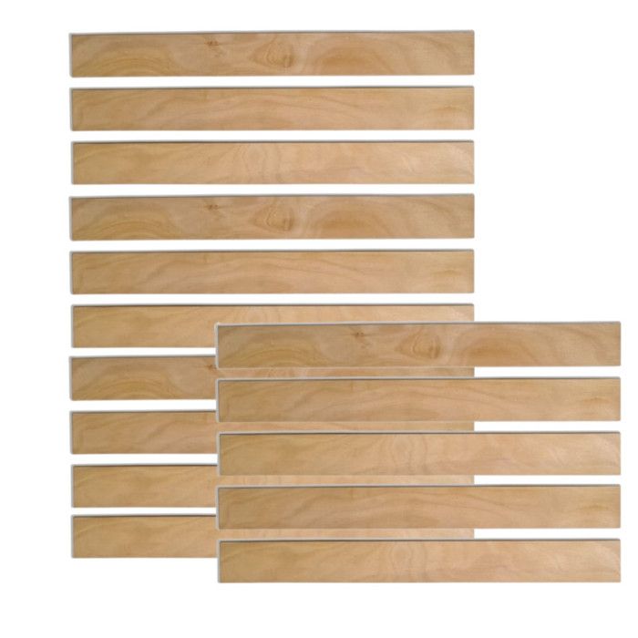 Latte De Lit 5 Lattes Bois - 780x53x8 Mm - Idéal Réparer Sommier / BZ / Clic Clac - Pieds De Lit BUT Lattes Sommier 1 Embout Pour Lattes De 53 X 8 Mm - Pieds de lit BUT Lattes Bois 560x53x8 Mm Universelles Lattes De Sommier En Bois De Hêtre - Bois Massif Résistant Et Flexible - 560 X 53 X 8 Mm - Maison Latte Sommier 7 Plis D’une dimension de 560 mm de long, 53 mm de large et 8 mm d’épaisseur, elles s’adaptent parfaitement à la majorité des systèmes de sommiers à lattes, clic-clac, BZ et lits simples ou doubles. Idéales pour la réparation ou la rénovation de votre sommier, ces lattes se posent facilement dans les embouts plastiques standards sans outil spécifique. D'une dimension de 560 mm de long, 53 mm de large et 8 mm d'épaisseur, elles s'adaptent parfaitement à la majorité des systèmes de sommiers à lattes, clic-clac, BZ et lits simples ou doubles Le bois de hêtre, reconnu pour sa solidité naturelle et sa souplesse, garantit une excellente résistance à la pression tout en assurant un confort de couchage optimal. ✅ Dimensions universelles : 560 x 53 x 8 mm – compatibles avec la majorité des sommiers à lattes, clic-clac et BZ. 🛠️ Faciles à installer : s’insèrent simplement dans les embouts standards sans outil ni vissage. 🌳 Bois de hêtre naturel : matériau robuste, durable et flexible pour un confort et un maintien optimaux.
