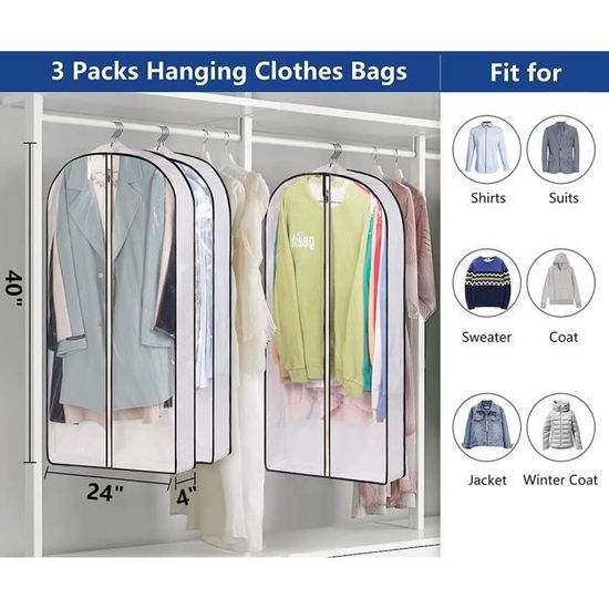 Résistant à l'eau et à la moisissure, il peut protéger vos vêtements contre les poussières et les cheveux des animaux domestiques, en les gardant frais, propres et sans plis. Lot de 6 Housses de Protection pour Vêtement Translucide Anti-Poussière Etanche avec Fermeture ★ PEUT ÊTRE RÉUTILISÉ - Ce sac de vêtement peut être lavé, afin que vous puissiez le réutiliser pendant une longue période. Penderie Vetement Lot De 8 Lavable Transparent Etanche Anti-Poussière Housses De Protection Pour Chemise/ Costume Penderie Enfant Cliquez simplement sur Ajouter au panier pour en avoir un pour vous-même ou vos amis et votre famille. C'est parfait pour tous vos besoins de stockage et de voyage. 5pcs Housses de Vêtements,Couverture Lavable Transparent Etanche Anti... Économisez beaucoup d'espace. Et la couleur TRANSLUCENT peut protéger vos vêtements de la décoloration si elle est accrochée près de la lumière naturelle. Ces housses transparentes sont la solution idéale ! Avec leurs dimensions généreuses de 60x100cm, elles protègent parfaitement vestes, chemises, pantalons... ★ CONNAISSEZ INSTAMMENT QUELLE COUVERTURE D'ENSEMBLE À L'INTÉRIEUR - Vous pouvez trouver les vêtements convenablement et rapidement sans ouvrir la couverture anti-poussière. Taille idéale pour les costumes, les chemises, les pantalons, les manteaux de sport, etc. ★ FAITES VOTRE CLOSET PROPRE - Il suffit de mettre votre vêtement dans le housse de vêtements, votre placard sera immédiatement bien organisé. Garantie à vie : Si vous rencontrez un problème avec notre produit, n'hésitez pas à nous contacter et vous recevrez un remboursement complet ou un remplacement. De plus, cette couverture peut être pliée facilement et facilement, mais très facile à stocker lorsque vous ne les utilisez pas.