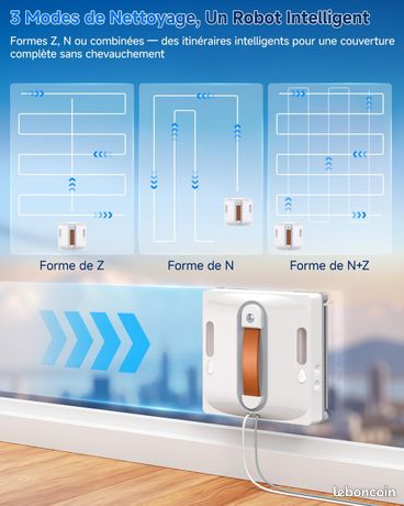 WIWOLER Robot Nettoyeur de Vitre, 5600pa Robot Laveur de La compensation automatique de la pression d'air assure un maintien constant, même sur des surfaces légèrement irrégulières. Nettoyeur Vitres Sécurité Corde 5m Ridgetube Robots Lave Vitres Robot Nettoyeur De Vitres Multifonction Robot Vitre Puissance d'Aspiration Exceptionnelle : Avec une puissance d'aspiration de 6500 Pa, l'appareil adhère en toute sécurité aux surfaces lisses. Robot laveur de vtre ntellgent nc5649 En vous dotant d’un robot lave vitre, vous n’aurez plus besoin de décaler à plus tard le nettoyage de vos fenêtres et de vos baies vitrées. Étant un véritable concentré de technologies, ce nettoyeur automatisé tient toutes ses promesses. Si vous doutez de cet accessoire, lisez ce guide d’achat... Modes de Nettoyage Polyvalents : Offre 3 modes de nettoyage : rapide, en profondeur et des bords. Sécurité Renforcée : Pour une tranquillité d'esprit totale, ce robot est doté d'une corde de sécurité de 5 mètres, d'un système de protection en cas de panne de courant offrant une autonomie de secours de 30 minutes, et d'une assurance contre les chutes. La plaque de nettoyage flottante s'adapte automatiquement aux surfaces pour un nettoyage efficace et en douceur, assisté par un capteur optique. Planification Intelligente par IA : Notre robot nettoyeur de vitres utilise une planification d'itinéraire contrôlée par l'IA pour un nettoyage efficace des fenêtres, miroirs et carreaux. Ces caractéristiques garantissent que l'appareil reste en place et fonctionne de manière sûre, même dans des conditions imprévues. Protection Prolongée 30 Minutes de Sécurité Même Après une Coupure de Courant