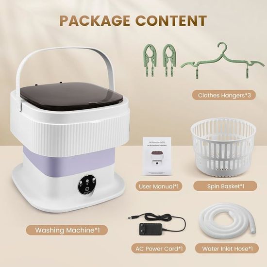 Machine à laver portable pliable : notre mini machine à laver portable est petite et portable et prend 30 x 30 x 14 cm une fois dépliée et 30 x 30 x 14 cm lorsqu'elle est dépliée. Machine à Laver Voyage Machine à Laver Manuelle Mini Machine à Laver Machine à Laver Portative Machine à Laver Pliable Machine à Laver Pliable Camping Caractéristiques du produit : Capacité du produit : 10 l., Puissance nominale : 60 W. Machine laver pliante Notre Mini machine laver a une conception pliable qui peut tre facilement pli e et stock e apr s utilisation, conomisant de l'espace et facile transporter. La petite machine laver a une puissance de 10 Watts et p se 1,7 kg. La taille pli e est 26 * 26 * 14cm. Id al pour les voyages, les dortoirs, les caravanes et le camping 3 modes de temps : gagnez du temps avec un temps de lavage standard de seulement 10 minutes et un lavage rapide en seulement 5 minutes pour enlever facilement les taches. Toujours prêt pour un lavage rapide Points clés : [Machine à laver compacte et portable]cette machine à laver est portable et compacte. Elle est parfaite pour votre espace limité comme les dortoirs, les appartements, les camping-cars, et plus encore. [Design prévenant]elle dispose d'un cycle de rinçage automatique pour enlever le savon et laisser vos vêtements très propres et exempts de résidus et d'irritations... Nettoyage efficace : la mini machine à laver portable utilise un matériau en silicone de haute qualité, plus sûr et plus durable. Fréquence nominale : 50 Hz., Temps : 0 à 10 min. Petite machine à laver portable de 10 l : conçue pour les petits objets qui doivent être lavés séparément, tels que les sous-vêtements, les chaussettes, les serviettes et les vêtements de bébé. Mini machine à laver pliable lave linge Mini machine à laver 2 en 1 : la mini machine à laver portable dispose d'un design semi-automatique avec commande tactile et intègre le lavage et le séchage en un, ce qui est pratique et rapide. Références de capacité : vêtements pour bébé × 6/vêtements pour animaux de compagnie × 6/chaussettes × 12/serviette × 6/sous-vêtements × 6/soutien-gorge × 6., Si vous avez trop de vêtements, veuillez les laver en plusieurs passages pour un meilleur résultat de lavage.
