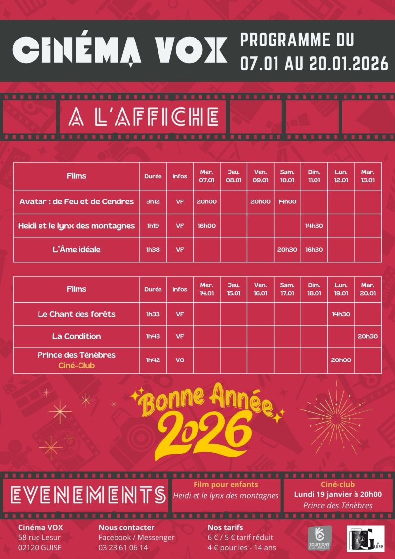 CINEMA : Programme de Janvier 2026 - Site officiel de Parfait pour un usage personnel ou professionnel, il combine organisation pratique et décoration moderne. Calendrier Décoration Intérieur Grand Format Cahiers Du Cinéma N°827 : Les Films Les Plus Attendus De 2026 - Janvier Multilingue Français Anglais PAPIER 140g - Conçu en papier mat de haute qualité de 140g, ce calendrier assure un confort d'écriture optimal et est parfait pour une organisation sans traces ni bavures tout au long de l'année. Redécouvrez les chefs-d'œuvre intemporels avec des affiches emblématiques de films légendaires comme Ben Hur, Psychose ou Citizen Kane Ce calendrier mural 2026 célèbre l'univers du cinéma, des séries et des dessins animés. Chaque mois présente des images emblématiques de films cultes, personnages célèbres et scènes mémorables, pour ravir les passionnés Il s'attache facilement au mur et s'intègre parfaitement dans n'importe quel espace en apportant une touche décorative à votre intérieur JANVIER à DÉCEMBRE 2026 - Ce calendrier mensuel vous accompagne tout au long de l'année 2026, avec une page dédiée pour chaque mois, de janvier à décembre, pour une organisation optimale et sans faille PAPIER ÉPAIS - Fabriqué avec un papier mat de haute qualité de 140g, ce calendrier offre un grand confort d'écriture et est donc parfait pour s'organiser efficacement tout au long de l'année, sans bavures ni traces Il se fixe facilement au mur et ajoute une touche décorative à votre espace. CALENDRIER MURAL - Une fois déplié, ce calendrier mesure 30x60 cm, offrant une vue claire et détaillée de chaque mois. Organisez votre année avec originalité grâce à notre calendrier mural 2025/2026 !