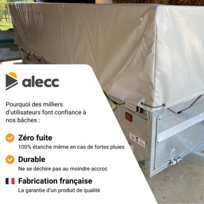 ✅ Tranquillité d’esprit même par mauvais temps : La toile étanche en PVC 640 g/m² protège efficacement vos chargements, même en cas de fortes pluies ou de longue exposition au soleil. LIDER FLORENCE 39330/42330 - SPE233.1 - 233 x 132 x 39 cm - 2 essieux Bâche PVC 640g/m² étanche Bâche Pour Remorque - Lider - Florence 39330 - Dimensions 240cm X 139cm Bâche Lider Florence 42330 240x139cm Protégez durablement votre remorque Lider Florence 42330 avec cette bâche de protection de dimensions 240 x 139 cm, conçue pour résister aux intempéries et aux usages fréquents. Grâce à son rebord de 10 cm et son sandow élastique inclus, elle s’installe facilement et reste bien en place, même pendant le transport. Bâche de protection pour remorque Lider Florence 42330 réhaussée de 50... Fabriquée en France avec une toile PVC 640 g/m² de qualité professionnelle, elle est entièrement étanche et traitée contre les UV et la moisissure pour protéger efficacement vos chargements de la pluie, du soleil et des saletés. Les angles sont renforcés et les œillets sont protégés par un ourlet doublé pour éviter les déchirures, prolongeant ainsi la durée de vie de la bâche. Produit de qualité fabriqué localement, avec garantie légale de 2 ans. Idéale pour les particuliers comme pour les professionnels, cette bâche est un investissement fiable qui évite les remplacements fréquents et vous garantit une tranquillité d’esprit au quotidien.