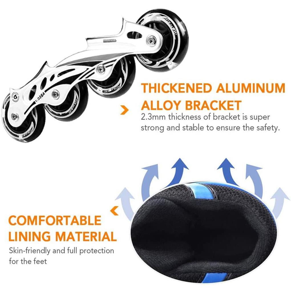Les roulements ABEC-7 haute performance assurent une conduite fluide et confortable,vous offrent une expérience de conduite silencieuse et agréable. Rollers en Ligne RUMOCOVO® avec Roues Lumineuses pour Enfants et... Tailles: S (27-31), M (32-37), L (38-41) Vérifiez le tableau des tailles pour correspondre à la taille exacte et obtenir un ajustement confortable. Parfait pour que les enfants en pleine croissance s'amusent avec leurs compétences en patinage. Roller Enfant 4 Roues RUMOCOVO® Rollers En Ligne Avec Roues Lumineuses Pour Enfants, Filles Rollers Enfant Garcon Maintenez-le enfoncé tout en tirant ou en serrant les chaussures pour ajuster la taille. ⛸️【Matériau confortable】Grâce à l'utilisation de matériaux de haute qualité,La doublure intérieure douce le rend confortable à porter et la conception en maille rend les chaussures de skate respirantes. ⛸️【Tailles Ajustables】 Roller quad peut être ajustée à différentes tailles au fur et à mesure que les pieds des enfants grandissent . (Vous devez confirmer la taille avant de commander) ⛸️【Meilleur cadeau】Chaque enfant a hâte de posséder une paire de patins sympas et espère maîtriser cette compétence sportive. assure un maintien sûr, une fixation de la cheville et protection enfants tout au long du parcours. ce qui sont populaires auprès des enfants et c'est plus évident la nuit. Roller en ligne Lia roue LED du 30 au 33 patin à roulette patin à glace triskate Enfant Mixte Blanc/Rose Raven Le roller LIA est un équipement à la fois ludique et ultra FUN, doté d'une roue avant constituée de LED qui s'illumine lorsque qu'il est en mouvement ce qui améliore considérablement la mobilité de l'air et éloigne la chaleur étouffante,offrent un grand confort de patinage. Patins à roulettes pour une visite détendue de la ville et des itinéraires pittoresques. Patin à Roulettes Enfant Taille Patins à Roulettes Enfants - Roues Lumineuses - Ajustables évolutifs Decathlon
