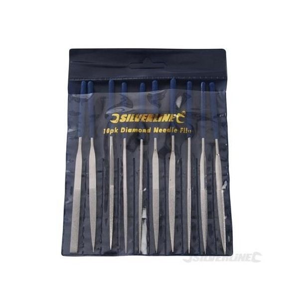 Silverline Limes Aiguilles Diamantées 10 pcs, 1 kit - France Diamètre de la tige : environ 3 mm. Kit De Limes Lot De 10 Mini Limes Aiguilles Diamantées En Métal Et Verre Mini Limes Diamantées - Diamants industriels incrustés en permanence dans la pointe de l'arbre en acier pour un retrait de matériau supérieur. 10 MINI LIMES NKF Jeu de limes diamantées BGS - droites - 140 x 3 mm - 10 pièces - 1920... [Multifonction] : idéal pour le jade, le bois, la céramique, le verre, le métal, le plastique et d'autres matériaux pour le meulage, le polissage, la gravure et le retrait de matériau. Longueur totale : environ 180 mm. Livré avec 10 formes uniques pour répondre à vos différents besoins. - Comprend un crochet, un crochet plat, un crochet carré, un cercle, un angle plat/convexe et plus encore. Quantité: 10pcs/set Contenu du paquet 10 limes à aiguilles diamantées Caractéristique - Ensemble de 10 fichiers conçus pour les objets difficiles à atteindre et de forme étrange.