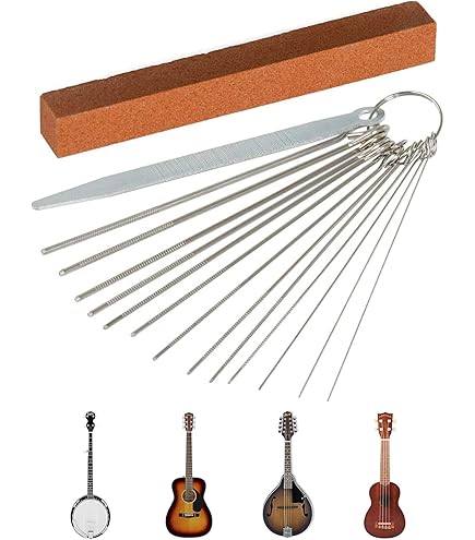 Lime Sillet Guitare Lot De 13 Limes à écrous De Guitare - Kit D'outils Pour Chevalet Et Tailles 0.014 0.061 Pouces Guitare Ukulélé Jeu de 12 limes de précision 140mm - SARL Améliorez votre performance musicale avec le ensemble de fichiers de sillet de guitare de qualité supérieure. Conçu pour la durabilité et la précision... ADAPTÉ : Ce jeu de limes pour écrous de guitare convient pour guitare et ukulélé. DIVERSES TAILLES : La lime à sillets de guitare est un ensemble autonome avec un ensemble de 13 limes rondes de différentes tailles et une lime plate. Spécification : Matériau : acier inoxydable Couleur : comme indiqué Diamètre : environ 0,014'' - 0,061'' Convient pour : guitare, ukulélé Poids : environ 13 g Liste des paquets : 1 * Ensemble de fichiers Bridge Remarque : Ces fichiers, en particulier les plus fins, se plient légèrement. MATÉRIAUX DE HAUTE QUALITÉ : Le jeu de limes pour écrous de guitare est fabriqué en acier inoxydable de haute qualité, est robuste, de haute résistance, antirouille et. QUALITE FERME : La poignée allongée est bonne pour une tenue ferme et une utilisation pratique. DIFFÉRENTES TAILLES : La lime à écrou de guitare est un ensemble autonome comprenant une gamme de 13 limes rondes de différentes tailles et une lime plate. FAIRE POUR : L'ensemble de limes à rainurer pour écrous est parfait pour limer les fentes de cordes dans les écrous et les ponts. Mxzzand Ensemble de fichiers de guitare Jeu de limes pour guitare, 22...