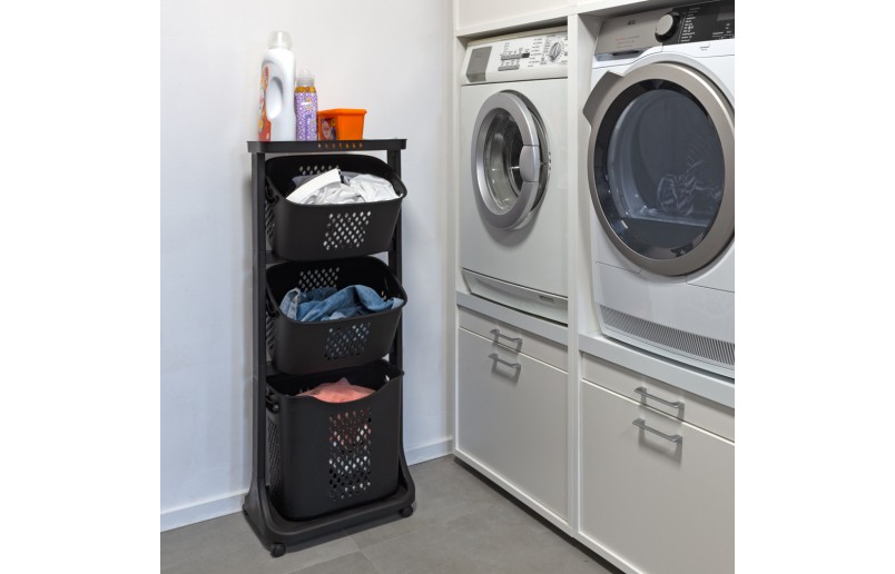 Chariot Linge 3 Sacs Trieuse À Linge Avec 3 Sacs Corbeille À Linge Sac À Linge Panier À Rangement Buanderie Pratique Panier à linge sale - Trieur de panier à linge - Panier à linge à compartiments - Panier à linge multifonction pour balcon 5568CHIC- Panier à linge,Trieuse à linge,Coffre à linge,Collecteur de... Cette trieuse de buanderie organise bien votre buanderie ou garde-robe, ce qui en fait le choix idéal pour répondre à vos besoins individuels. Elle présente trois sacs de tri qui peuvent être facilement retirés pour transporter le linge à l’aide des poignées en acier. De plus, les roulettes et les poignées à chaque extrémité du chariot sont idéales pour faciliter les mouvements. Imaginez à quel point il est pratique de garder vos vêtements sales rangés et de les transporter facilement dans votre buanderie, notre trieuse de linge conviviale vous le permet ! Le cadre en acier durable supporte des charges importantes de linge allant jusqu'à 20 kg. Elle est également facile à assembler et à entretenir., Couleur : noir Matériau du sac à linge : non-tissé , Hauteur avant : 73 cm Imaginez à quel point il est pratique de garder vos vêtements sales rangés et de les transporter facilement dans votre buanderie, notre trieuse de linge conviviale vous le permet