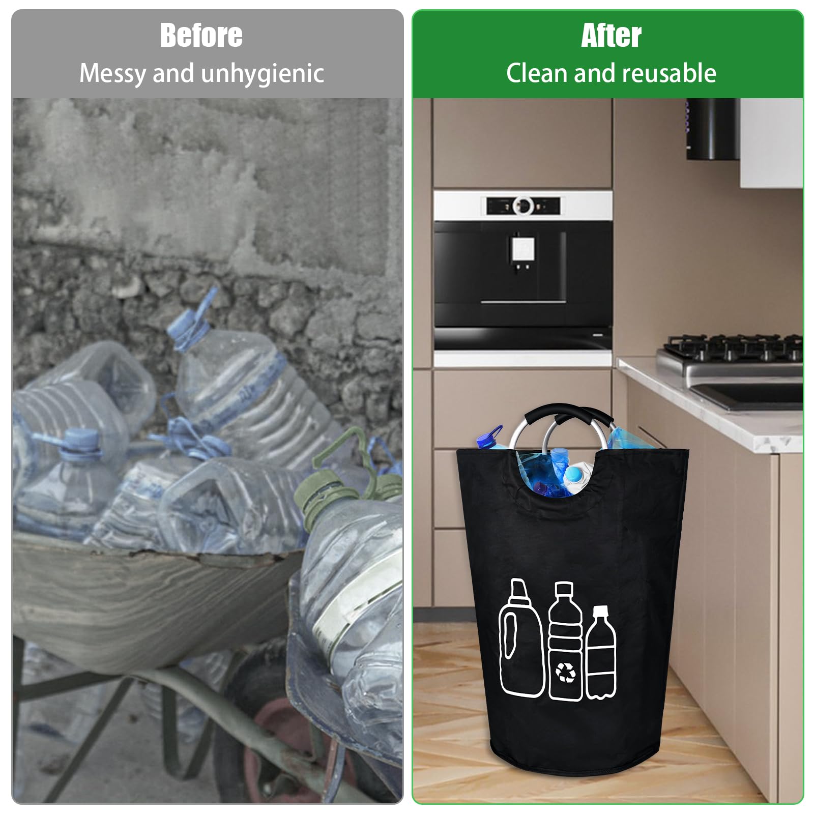 Bouteilles Consignées Gohytal 82 Litres, Conteneur De Collecte Pour Vieux Verre Bouteilles Vides Et Consignees Avec Poignees En Aluminium A Prise Souple Grand Rangement Pliable Espace De Cuisine Stockage Noir Panier À Linge Pliable En Plastique De 44 L - Panier De Rangement... Récipient Consigne Bleu Marine Bac De Collecte De Bouteilles Consignées - Panier à Linge Pliable - 82 L - Grand Bac De Rangement Avec Poignées - Étanche - Pour Tri De Linge, Bouteilles Consignées Rangement Cuisine Recyclage Caractéristiques techniques : Nom du produit : conteneur de collecte de bouteilles consignées 82 L, collecteur de bouteilles pliable vide, organisateur de bouteilles consignées avec poignée en aluminium, lavable vide, panier à linge, conteneur de consigne pour cuisine salle de rangement Matériau : tissu Oxford 300D Dimensions : 72 x 38 cm Poids : 240 g. Design pliable : notre collecteur de bouteilles vides est pliable et peu encombrant. Cottara® Bouteilles consignées pliables pour produits vides - Récipient... Poignée stable : le conteneur de bouteilles consigne dispose d'une poignée en aluminium Softgrip qui facilite le transport même des charges lourdes. Utilisation polyvalente : l'organiseur de bouteilles consigne convient également comme panier à jouets, collecteur de papier ou seau à linge. Fond renforcé : le conteneur consigne est fabriqué en polyester lavable avec un fond renforcé, qui maintient le récipient stable même sans contenu et peut facilement transporter plusieurs bouteilles ou canettes. Parfait pour la cuisine, la salle de bain ou le salon.