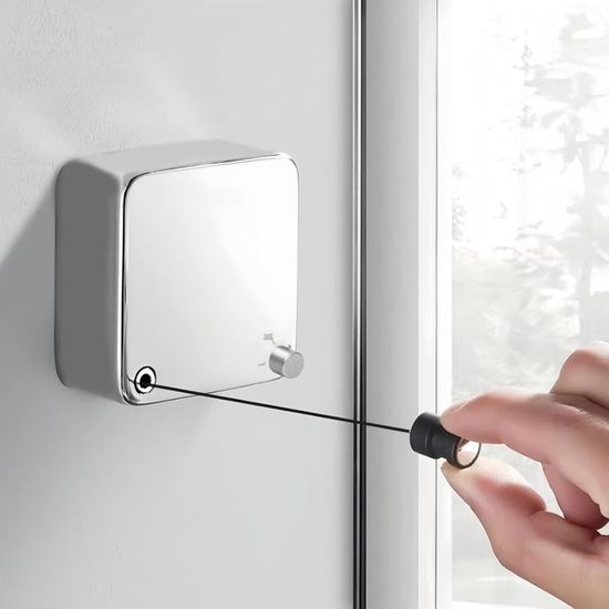 Câble Acier Extensible Corde à Linge Rétractable MUYIRTED - Lot De Une fois séparé de l'autre extrémité, l'étendoir se rétracte dans son boîtier à vitesse constante pour éviter les blessures lors de l'enroulement.Cet étendoir réglable est idéal pour suspendre des serviettes humides, des draps de bain et d'autres articles Corde à Linge Acier Inoxydable ABS Corde À Linge Rétractable, Étendoir À Linge Réglable, Cintre Mural Avec Bouton-Pression Réglable étendoir Mural Avec une capacité de poids maximale de 20 kg (44 livres), il est pratique et fiable pour divers besoins de lessive. 【Solution peu encombrante】 : la taille de mesure est d'env. Corde à Linge rétractable, 4.2m Acier Inoxydable Fil a Linge Punch... 【Installation bidirectionnelle】 : installez facilement notre corde à linge à l'aide du bâton de colle fourni ou des vis pour la fixer solidement au mur. Mesurant 5,9 x 9 x 9 cm, notre corde à linge présente un design concis qui peut être utilisée pratiquement n'importe où. Il offre un espace de suspension supplémentaire tout en vous simplifiant la vie, offrant une excellente solution lorsqu'une corde à linge permanente n'est pas réalisable. Parfait pour suspendre des serviettes, des couches lavables, des sous-vêtements, des chaussettes, des maillots de bain et plus encore, il aide à maximiser l'espace dans votre maison.