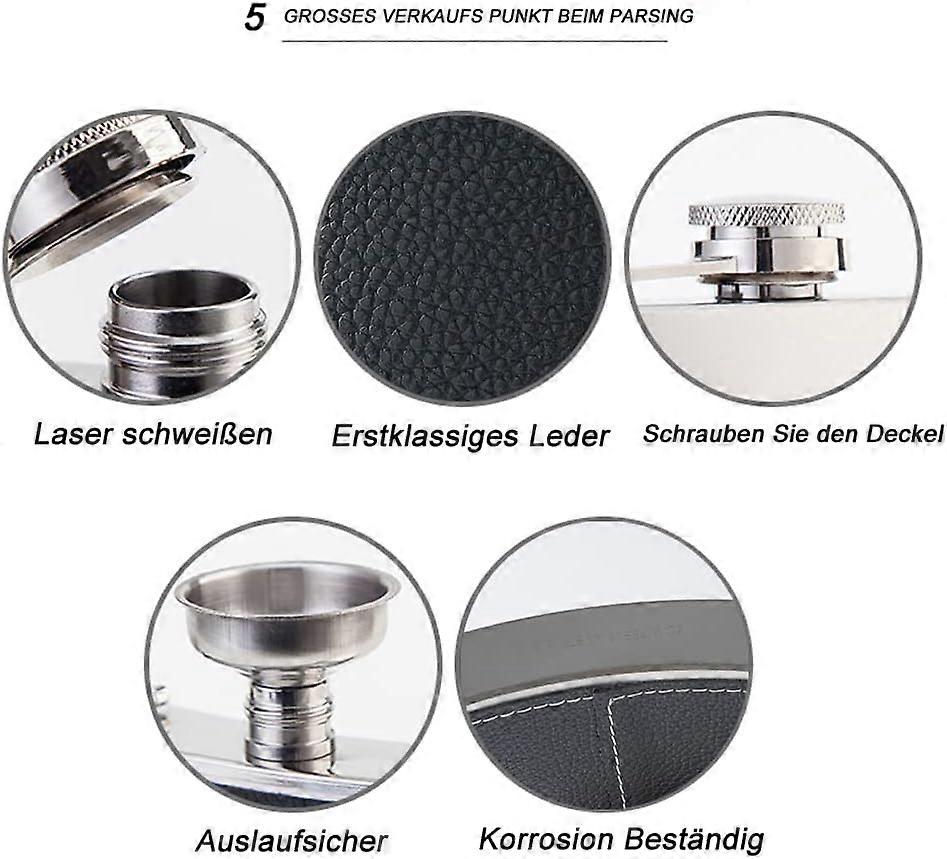 Flasque 8oz Avec Entonnoir Flasque à Alcool Pour Liqueur Et Entonnoir, Bouteille Portable En Acier Inoxydable Pour Vin, Whisky, Rhum Et Vodka, Cadeau Pour Homme (240 Ml Mini Bouteille Alcool Vodka Flasque whisky avec entonnoir pour remplissage facile Dww-Flasque a Alcool avec 1 Entonnoir 8Oz, Cuir Noir 240ml Fiole Alcool Portable Acier... Utilisez du thé ou de l'eau bouillie pour le nettoyer comme la première fois. 【Remplissage étanche et facile】Avec le couvercle à vis à charnière, il se connecte au flacon de hanche, de sorte qu'il ne peut pas être perdu. 【Bon cadeau】 L'ensemble de flasques en acier inoxydable est un cadeau de mariage, un cadeau pour homme, un cadeau pour la fête des pères, un cadeau de remise des diplômes et plus encore ! 【Flacon de hanche durable de qualité alimentaire】 fabriqué en acier inoxydable de la plus haute qualité, l'acier inoxydable est respectueux de l'environnement, non toxique, anti-corrosion, antirouille et passe au lave-vaisselle. Convient pour transporter du whisky, de la vodka, du rhum, du scotch, du gin, de la tequila, etc. 【Instructions d'entretien】 Lavez cette flasque avec de l'eau chaude savonneuse et rincez bien cette flasque et séchez soigneusement cette flasque. Hauteur 12,2 cm x largeur 9 cm x profondeur 2,2 cm. Vous pouvez l'emmener partout et également pour un long vol.Flasque 100 % étanche : chaque flasque à whisky est dotée d'un couvercle épais en acier inoxydable, d'une pression d'air, soudée au laser et d'un contrôle de qualité