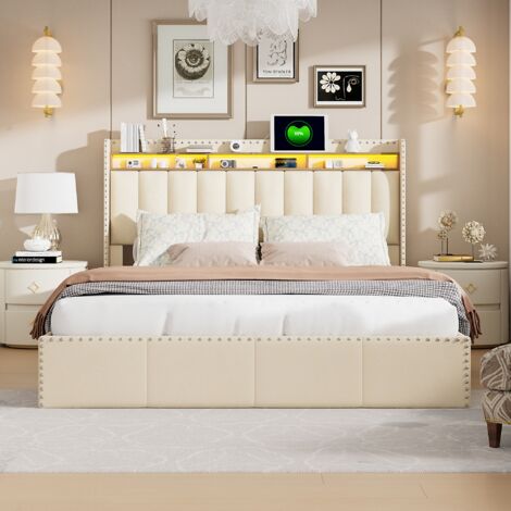 Capacité de charge maximale :340kg, Quantité par paquet : 2, Assemblage requis : Oui, Matelas inclus : Non, Poids : 50kg Lit Double 160 x 200, Lit Coffre 160x200 avec Sommier à Lattes, Cadre de lit Hydraulique Rembourré avec LED Réglable, Tête de lit en Velour,Facile à Installer... Les coussins en velours du dossier sont extrêmement confortables, ce qui en fait un endroit idéal pour lire ou regarder la télévision. Matériaux : Velours, Bois, Dimensions : 220x 167x100., 5cm (L x l x H) Lit Avec Rangement Hydraulique Lit 160x200 Avec Sommier, 2 Personnes, Rembourré Cadre Avec Éclairage Lit Double Bande LED Tete De Lit 【Durable et Confortable】 Le cadre métallique stable est associé à des lattes en bois pour plus de stabilité et de durabilité. Le dessous du lit est doté d'un support à gaz qui s'ouvre facilement pour accéder au vaste espace de rangement. 【Éclairage LED intelligent】Ce lit double 160x200cm est équipé d'une bande lumineuse LED réglable en tête de lit, créant une atmosphère chaleureuse et confortable. Les coussins rembourrés autour du cadre métallique réduisent le bruit et les vibrations pendant l'utilisation, améliorant ainsi la qualité du sommeil. Le dossier et le cadre extérieur rembourrés sont en velours, doux et facile d'entretien, alliant praticité et durabilité. Il est également équipé d'une bande lumineuse LED réglable en tête de lit, créant une atmosphère chaleureuse et confortable. Dimensions du matelas : 160 x 200cm Taille. 160x200cm ; Matériau. Bois, Velours ; Dimensions du produit. 2,12L x 1,65l x 1,07H mètres ; Style. Moderne ; Caractéristique spéciale. Ergonomique, Motif à... Lit en velours doux Ce lit double présente un design minimaliste et sophistiqué, alliant un design capitonné à des détails raffinés pour incarner l'esthétique de la vie moderne. Pour toute question, n'hésitez pas à nous contacter. Lit Coffre 160x200 avec LED,lit capitonné 160x200cm avec Rangement et tête de lit,Parure de lit