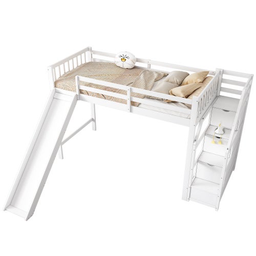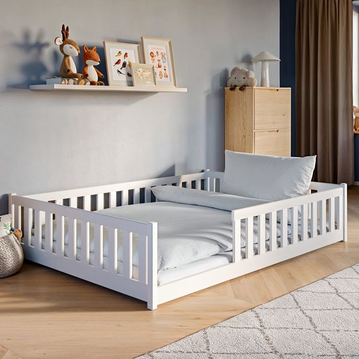 Lit Ludique Sécurité Barrières Lit Cabane Pour Enfant Avec Toboggan Et échelle 90 X 200 Cm, Lit Lit Mezzanine Enfant Homestyle4u Lit Mezzanine Enfant 90x200 cm Blanc avec Toboggan Lit cabane Specialize avec toboggan et échelle - Wit - 90 x 200 cm... Alliant ingénieusement amusement et praticité, ce lit innovant est équipé d'un toboggan pour des descentes joyeuses et d'une échelle-ladder astucieuse intégrant des rangements. Dans son élégante finition blanche intemporelle, ce lit s'adapte à toutes les ambiances et libère l'espace tout en stimulant l'imagination - l'investissement idéal pour grandir en s'amusant. Construction robuste en bois massif Fabriqué en matériaux premium, ce lit enfant garantit une durabilité et une fiabilité exceptionnelles pour une utilisation en toute sérénité. Transformez la chambre de votre enfant en un univers ludique et fonctionnel avec notre lit superposé 90 x 200 cm. Sécurité renforcée avec garde-corps surélevés Des barrières hautes et solides assurent une protection optimale pendant le sommeil et les jeux, pour une tranquillité d'esprit totale. Son assemblage facile avec instructions incluses devient une activité familiale ludique pour développer la complicité parent-enfant. La finition blanche intemporelle s'adapte à toutes les décorations. Ce lit mezzanine enfant de 90×200 cm est conçu en bois de pin et MDF, offrant une structure robuste et stable. Il est équipé d'un toboggan amusant et d'un escalier roulant pratique, garantissant un accès sécurisé et un plaisir de jeu pour les enfants