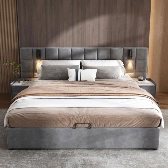 Si vous avez des questions ou des préoccupations, notre service client est disponible pour vous assister à tout moment. Lit Adulte Capacité 350kg UnboxGermany Lit Coffre 160x200cm LED Avec 2 Prises USB, Tête De Lit Rangement Lit Moderne Ambiance Lumineuse Dimensions totales du produit : 202 x 167 x 116 cm (matelas non inclus) Lit confortable avec éclairage led et 4 tiroirs, lit double 160x200cm... Offrant un soutien confortable lorsque vous vous appuyez sur le dos ou la tête, elle vous permet de lire, regarder la télévision ou vous détendre dans un maximum de confort. 🛏️【Espace de rangement spacieux et pratique】Avec 32 cm de hauteur sous le lit, vous disposez d’un grand espace de rangement pour vos couvertures, oreillers ou autres articles. UnboxGermany Lit Double 160x200cm avec Rangement ️ LED RGB réglables pour une ambiance personnalisée Le cadre de lit et la tête de lit sont équipés de lumières LED RGB... 🛏️【Grande capacité de charge, sécurité optimale】Grâce à une structure métallique de haute résistance, ce lit offre une capacité de charge maximale de 350 kg, garantissant que votre matelas ne s'affaisse pas et que vous bénéficiez d'une base stable et sécurisée pour une qualité de sommeil optimale. Capacité de charge maximale : 350 kg Parfait pour optimiser l’espace de votre chambre, surtout dans des pièces où l’espace est limité. Lit Coffre Double 160x200cm Avec LED, Ports De Charge Et Rangement, Lin Remarques importantes : Ce produit est livré en 2 colis, qui peuvent arriver à des moments différents., Matelas non inclus. 🛏️【Assemblage facile et service client fiable】Ce lit est livré avec un manuel d’assemblage détaillé et peut être monté en environ 1 heure.