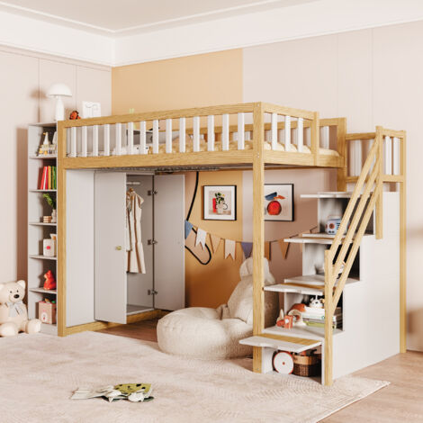 Il offre aux enfants et aux adolescents un environnement de sommeil sûr et sans souci, ce qui le rend idéal pour les chambres d'enfants. Lit Superposé Avec Armoire étagères Lit Mezzanine Multifonctionnel 90x200cm Avec étagères, Placard De Rangement Et Grande Penderie Echelle De Securite Avec Compartiments De Rangement Coloris Blanc Bois Brut 85711119 Lit 1 Place Avec Rangement Ce lit mezzanine de 90 x 200 cm a été conçu pour les enfants et les adolescents et offre un maximum d'espace et de fonctionnalité. Le lit est doté d'une barrière de sécurité robuste sur les quatre côtés. Il convient parfaitement aux choix familiaux et aux diverses décorations de chambre d'enfant 【Armoire spacieuse】 - La grande armoire intégrée sous le lit de ce lit d'enfant offre un espace de rangement suffisant pour les vêtements et autres objets importants. 【Échelle de sécurité avec espace de rangement】 - L'échelle de sécurité avec tiroirs intégrés sur le côté de ce lit d'enfant permet un accès facile et sûr à la zone de couchage tout en offrant un espace de rangement supplémentaire. Style. Moderne ; Taille. 90x200cm ; Caractéristique spéciale. espace de rangement, Éclairage LED, Économie d'espace ; Couleur. Naturel ; Dimensions du produit. 2,5L... Les couleurs blanc et bois naturel s'harmonisent bien avec une grande variété de styles d'intérieur. Les étagères et les petites armoires offrent beaucoup d'espace pour les livres, les jouets et les objets décoratifs, et permettent de tout garder à portée de main et bien rangé. 【Étagères et armoires de rangement intégrées】 - Ce lit mezzanine avec étagères et compartiments de rangement vous permet de ranger facilement des livres, des jouets et des effets personnels. Lit Mezzanine 90x200cm Blanc - Superposé Avec Table, Penderie, Étagères La partie inférieure du lit comprend une armoire encastrée spacieuse, idéale pour ranger les vêtements et autres objets importants, et qui permet de garder la chambre bien rangée. 【Sûr et protégé】 - Fabriqué en bois massif de haute qualité avec un sommier à lattes, ce lit pour enfants est durable et peut supporter jusqu'à 120 kg.