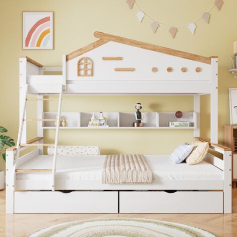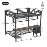 Merax Lit Superposé pour 3 Personnes avec Lit Double 140x200 cm et Lit Simple Taille. 140*200 · Matériau. Bois, Flanelle, Métal · Dimensions du produit. 2,39L x 2,08l x 2,08H mètres · Style. Moderne · Caractéristique spéciale. Port USB... Lit 90x200 Et 140x200 Superposé Lit Superposé Enfant 140*200, Lit Double En Métal, Lit Enfant Familial, Lit Superposé Lit Superpose 3 Place Dimensions totales : 239 x 208 x 148 cm Poids total : 87 kg Matelas assortis (matelas non inclus) : 90 x 200 cm et 140 x 200 cm (épaisseur du matelas ≤ 12 cm) Distance entre les lits superposés : 87 cm Capacité de charge : 300 kg Caractéristiques Nom du produit : Lit en fer Couleur : Noir Matériau du cadre : Fer Matériau des lattes : Fer Méthode d’assemblage : Auto-installation La structure est-elle interchangeable de gauche à droite ? Non Certifié FSC : Oui Nombre de colis : 4 Pays d’origine : Chine Remarque : Ce produit contient 4 colis. Accessibilité et sécurité : L'escalier confortable avec rampes facilite l'accès à l'espace de couchage supérieur, garantissant un confort optimal. Dimensions du couchage : 90 x 200 cm; Nombre et type de rangements : Espace de rangement extra large : notre lit blanc pour enfant est équipé d'un escalier... Il est normal que nous recevions 4 colis à des dates différentes ; merci de votre patience. Stabilité et confort de couchage : Un cadre de lit stable, associé à des sommiers à lattes robustes, assure un soutien ferme et un couchage sûr. Le plaisir de l'installation vous permettra d'apprécier encore plus ce lit. Rangement et praticité : Le lit supérieur est équipé d'un espace de rangement, offrant un espace supplémentaire pour le linge de lit ou les jouets, pour un gain de place.