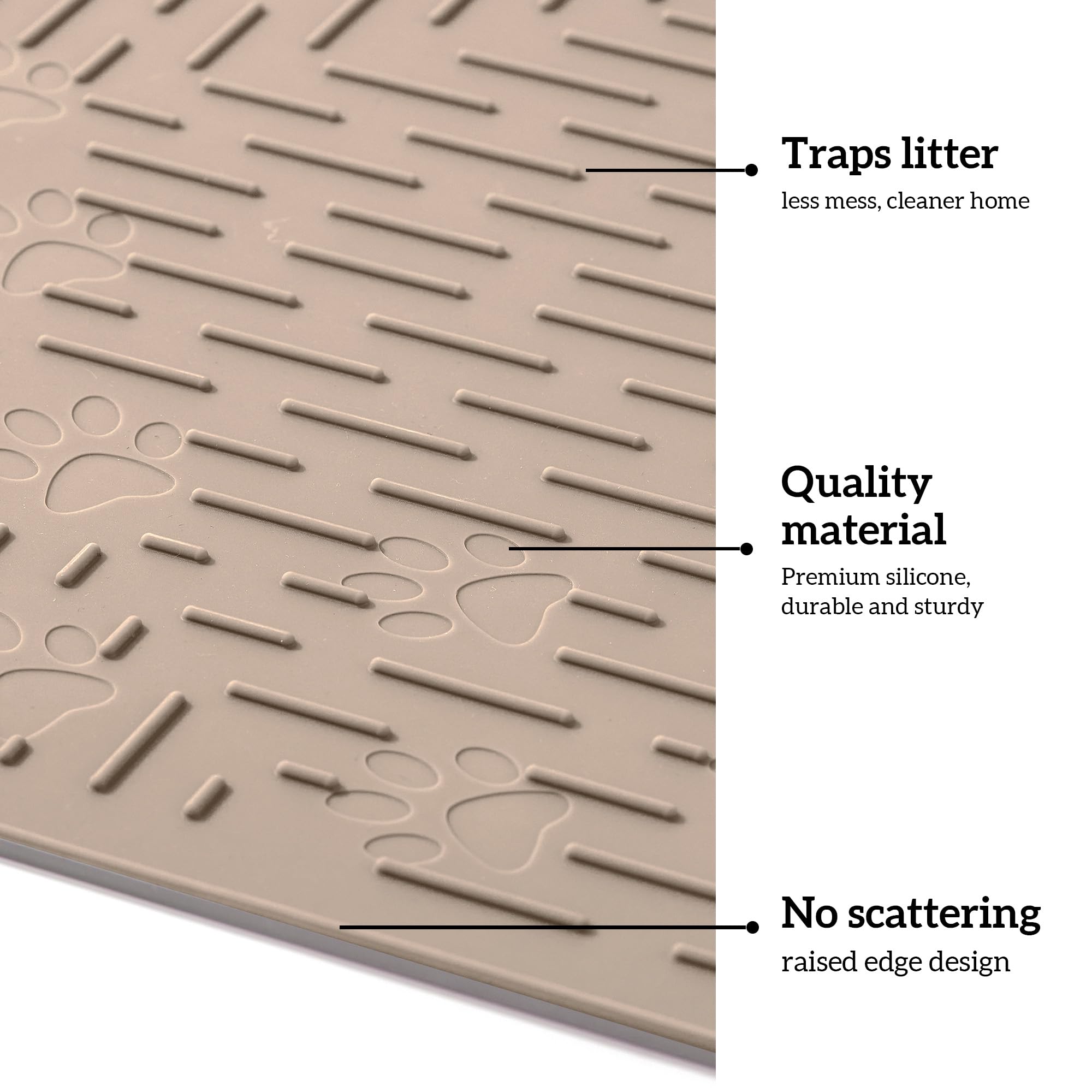 Tapis D'évier De Cuisine En Silicone, Tapis D'égouttage Pliable Et Antiderapant Facile A Nettoyer Drainage Rapide 26 5 X 26 5 Cm Violet 94199395 Tapis Imperméable Facile Nettoyer Tapis De Litière En PVC Pour Animaux De Compagnie, Multifonction, Portable, Antidérapant, Pour Tapis Litière Facile à nettoyer] : le tapis Kitty Litter est grand, conçu avec des rayures, facile à jeter les litières pour chat dans le bac à litière, réutilisable et pratique à utiliser 【Dimensions】: Mesurant 449,5 cm x 40 cm x 1 cm/19,49 pouces x 15,75 pouces x 0,39 pouces, il s'adapte à la configuration de votre bac à litière pour chat sans aucun problème Notre tapis de litière en silicone est la solution intelligente pour chaque bac à litière. En tant que litière mate de taille XXL (80 × 56 cm), elle assure un environnement de litière propre – sans largeur de litière sur le sol. Le silicone de qualité alimentaire est imperméable et protège de manière fiable contre l'urine ou les... 【Matériau】: Fabriqué en silicone, ce tapis de litière est robuste et facile à nettoyer, offrant des performances durables 【Compatible】: Ce tapis de litière en silicone est conçu pour le , compatible en confirmant votre modèle de litière pour chat avant d'acheter cet accessoire