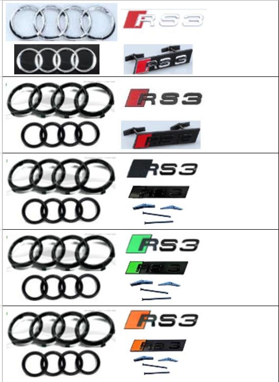 CALANDRE NOIR BRILLANT LOOK RS3 POUR AUDI A3 ET S3 8V PHASE 2 DE 05/2016 A 2019 Logo Emblème RS3 Arrère 145x38 MM Coffre Nor Brllant Aud A3 S3... Logo Rs3 Audi Logo Emblème RS3 Noir Brillant Avant Calandre A3 S3 RS3 - France Logo Avec Visserie Et Adhésif Veuillez mesurer vos bagues ! Améliorez le look de votre Audi avec cet ensemble d'emblème et de bagues noir brillant haut de gamme, conçu pour une finition... *** NEUF *** L'avant est fourni avec sa visserie et l'arrière avec du scotch double face. Pack de 2 logos RS3 noir brillant pour coffre et calandre.