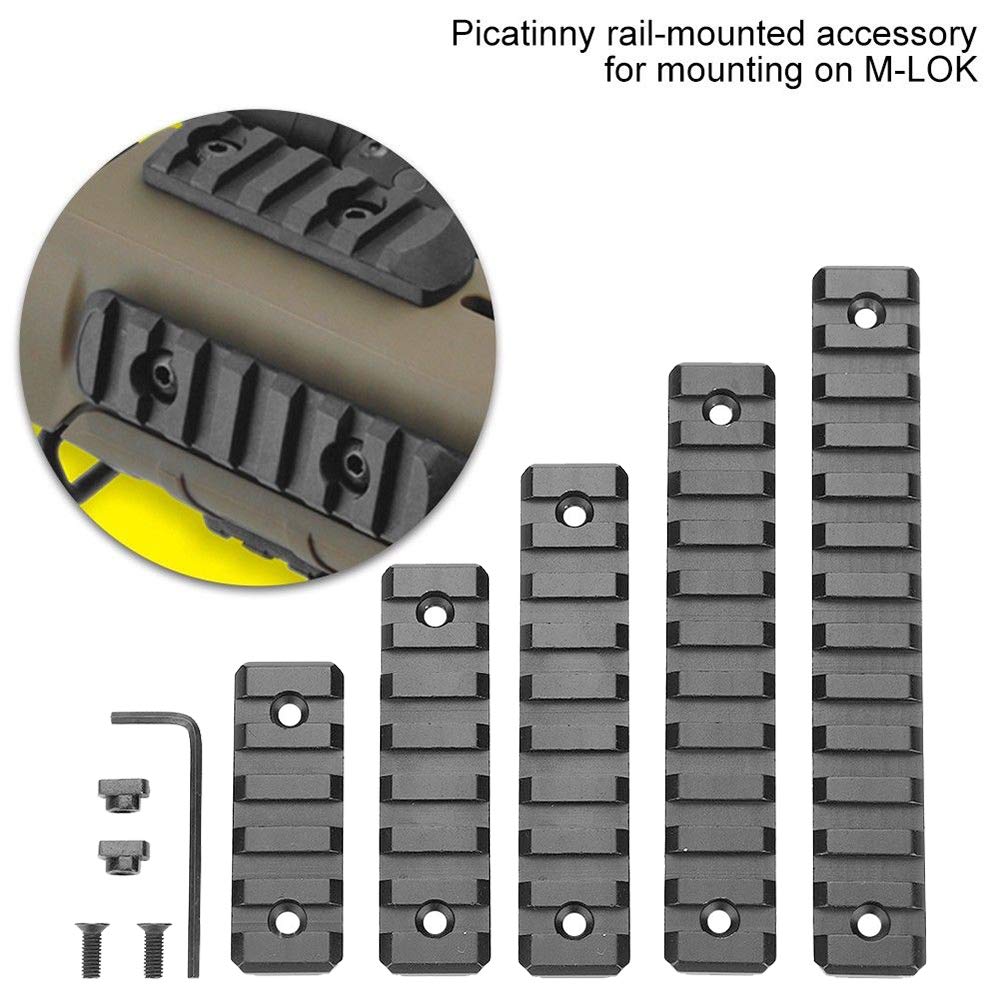 Rails Picatinny M-lok 5pcs Aluminium M-Lok Picatinny Rail 5 7 9 11 13 Slot Léger Accessoire Fusil Aluminium Produits de luxe, aluminium, matériaux solides et durables]Usiné de précision dans un alliage d'aluminium d'avion premium T6-6061 et en acier à haute résistance avec finition anodisante matte noir, offrir des performances durables et sûres dans l'utilisation Kits de rails M-LOK, support de Rail Picatinny à 5/7/9/11/13 fentes 【Lightweight & Solid-Style】Une structure en aluminium Super léger mais solide et une conception à profil bas réduisent le volume. Cette section de rail picatinny avec 5 slots en aluminium est conçu pour être utilisé avec les garde-mains M-LOK® pour permettre la fixation de différents accessoires tel que les lampes, les poignées verticales, etc... Sans ajouter trop de poids inutile lors de la chasse. Plus important encore, il peut empêcher les mains de se gratter lors de l’opération. 【De parfaites Sections à créneaux multiples】Rails conçus pour être utilisés avec tous les protège-mains standards compatibles, cinq longueurs différentes vous donnent le choix. 【Produits de luxe, aluminium, matériaux solides et durables】Usiné de précision dans un alliage d’aluminium d’avion premium T6-6061 et en acier à haute résistance avec finition anodisante matte noir, offrir des performances durables et sûres dans l’utilisation.