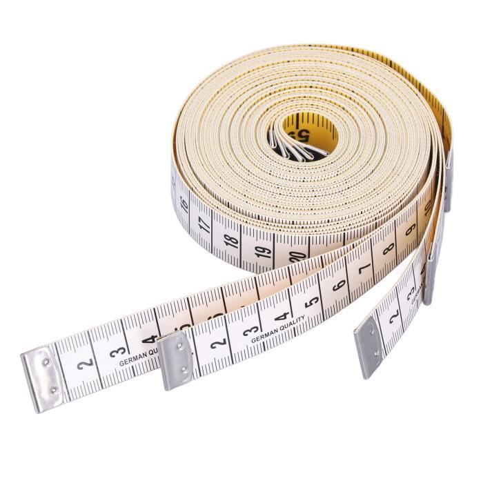 Mètre Ruban Lot De 10 Rubans à Mesurer Double Face échelle Ruban de Mesure Auto-adhésif, 3 Pièces Règle Métrique Auto-adhésive... Measuring Tape Ruban à Mesurer Long Distance 2 Pièces Ruban à Mesurer, Mètre Metre Couture Description du produit Fonctionnalités Détaillées Matériel: Pvc + Fibre De Verre Taille : 1,6 Cm X 1,5 M Couleur : Texte Blanc Sur Fond Noir. 【Matériau Du Produit】 Ce Produit Est Fabriqué En Pvc Et En Fibre De Verre, Ce Qui Rend Le Ruban À Mesurer Durable Et Flexible. Trust-Ruban à mesurer pour le corps Ruban à mesurer portable pratique... 【Contenu Du Produit】 Vous Recevrez 2 Morceaux De Ruban À Mesurer À Coudre D'Une Largeur De 1,6 Cm Et D'Une Longueur De 1,5 M, Avec Du Texte Blanc Sur Fond Noir, Adaptés À Diverses Fins Telles Que La Couture Et La Mesure. La Combinaison De Matériaux Le Rend Moins Susceptible De S'Étirer Ou De Se Déformer. 【Conception Portable】 Ce Ruban À Mesurer Est Léger Et Facile À Transporter Et Peut Être Facilement Enroulé Après Utilisation Pour Un Rangement Facile Dans Une Boîte À Outils, Un Tiroir Ou Un Sac. C'Est Un Outil De Mesure Pour La Couture, La Décoration De La Maison Et L'Artisanat.