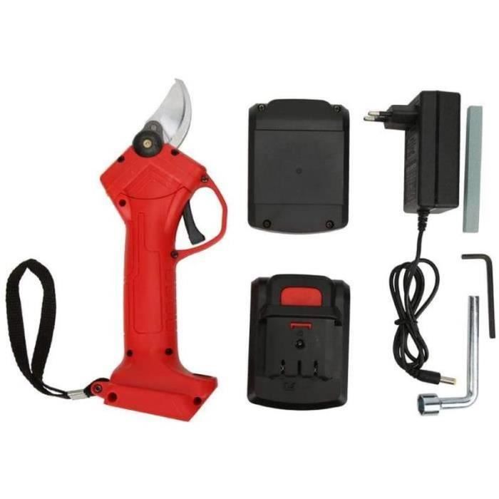3 réglages de longueur : Ce sécateur sans fil est équipé de 4 perches modulaires à assembler soi-même, offrant 3 réglages de longueur (136 cm, 185 cm, 233 cm) pour s'adapter aux utilisateurs et aux branches de différentes hauteurs. Lames tranchantes en acier carbone SK5 : Ce sécateur utilise des lames tranchantes en acier carbone SK5 d'une ouverture maximale de 60 mm, permettant de couper sans effort des branches jusqu'à 40 mm d'épaisseur. 2 batteries haute capacité 3000 mAh : Équipé de deux batteries rechargeables 21 V 3000 mAh, ce sécateur offre une autonomie de 6 à 8 heures, augmentant ainsi sa productivité. Conception 2 en 1 et moteur sans balais : Notre sécateur électrique fonctionne comme un sécateur à perche longue pour les travaux en hauteur ou comme un mini-sécateur pour les travaux au ras du sol. Secateur De Jardin Cisaille De Jardin Léger Jardin Cisailles Jardin La tête est réglable selon 7 angles pour couper des branches à différents endroits Consultez facilement la charge restante et le nombre de coupes grâce à l'écran rétroéclairé. Cisaille télescopique électrique Haute Altitude sécateur Jardinage... Plusieurs dispositifs de sécurité : Conçus pour la sécurité, nos sécateurs comprennent : 1., Interrupteurs, verrouillage de sécurité et gâchette de démarrage à double pression pour éviter toute activation accidentelle ; 2., Bandoulière et poignée en mousse pour une utilisation confortable et sans effort ; 3., Poignée antidérapante pour une prise en main sûre ; 4., Protège-lames pour protéger les lames et l'utilisateur lorsqu'ils ne sont pas utilisés Équipé d'un moteur sans balais de 800 W, efficace et silencieux, ce sécateur coupe sans effort des branches jusqu'à 40 mm d'épaisseur grâce à ses lames tranchantes et durables en acier carbone SK5., Bénéficiez de 6 à 8 heures d'autonomie grâce aux deux batteries haute capacité de 3 000 mAh incluses. Le kit comprend également une pierre à aiguiser pour des coupes plus nettes, deux lames supplémentaires et trois clés pour le remplacement des lames Cisaille De Jardin Sécateur électrique Professionnel, Sécateur De Jardinage à Long Manche Télescopique, Lame SK5 Diamètre De Coupe 28 Mm, Pour Haie, Arbre, Fruit, Buisson, Verger Sécateur Perche Longue 233cm Cisaille électrique sans fil 3.6V, coupe de Branch... – Grandado L'écran affiche clairement la charge restante pour un travail en extérieur sans souci