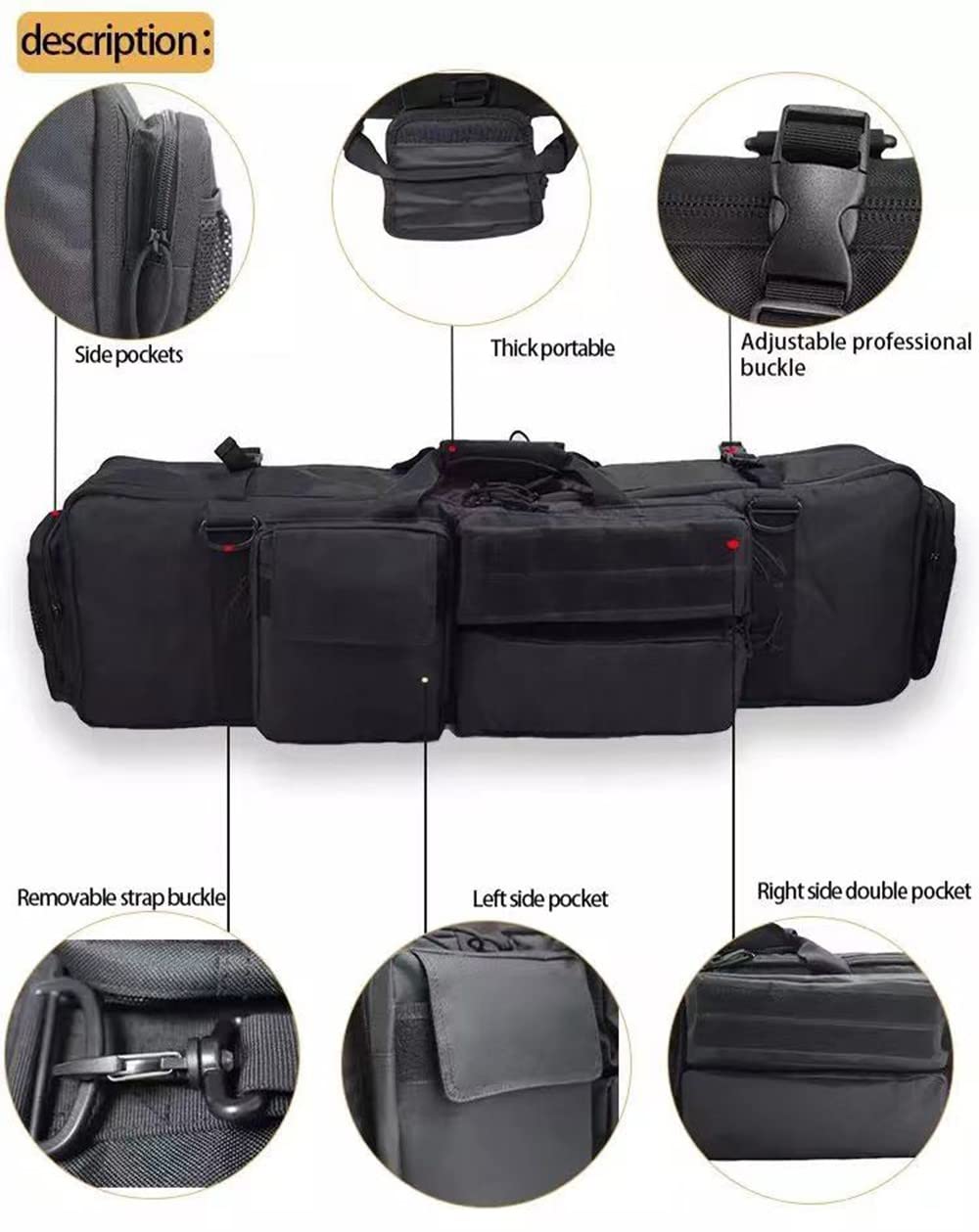 Bretelles et sangles de poitrine rembourrées réglables. Utilisé pour stocker des munitions, des briquets, des appâts, des balles, des chargeurs, du matériel de pêche ou tout autre accessoire dont vous pourriez avoir besoin. 【Apparence élégante】: Les étuis à fusil modernes se concentrent non seulement sur la fonctionnalité, mais prennent également en compte la conception de l'apparence, offrant une variété d'options de couleur et de style pour répondre aux préférences et aux besoins personnels de l'utilisateur. Conception raisonnable : Rangez les fusils d'une longueur maximale de 46 pouces, et le sac à fusil plus petit peut stocker des fusils jusqu'à 28 pouces. HOUSSE DE TRANSPORT CARABINE UX Caractéristiques: Matériau : tissu Oxford 600D Poids : 1,2 kg Couleur : Vert armée, Noir, Camouflage 1, Camouflage 2, Couleur désert Taille: 81 cm/94 cm/118 cm Emballage inclus: 1 sac à fusil Le sac comporte plusieurs compartiments, ce qui est pratique pour ranger les balles, les lunettes et les outils de nettoyage afin de garantir que tout soit bien organisé. Sac de Transport pour Arme Longue 2 Fusils 86 cm et 2 Pistolets 91cm Bandoulière Système Molle... 【Large application】Les sacs tactiques pour armes à feu sont légers et ont une large gamme d'applications. Nom : Sac à carabine tactique/Sac à carabine d'extérieur Le sac pour carabine d'extérieur est fabriqué à partir de matériaux résistants à l'usure et imperméables, conçus pour protéger et transporter les carabines et leurs accessoires. 【Facile à transporter】Ce sac de camping pour fusil de chasse est également livré avec des poignées et des sangles de sac à dos. Malette Transport Arme Housse Pour Arme Longue, Fusils De Chasse Tactical Double Rifle, Housse De Transport Airsoft Pour Protéger Un Fusil Pendant Le Transport, 36Inch A Sac Carabine Tactique POLYVALENT: Il peut accueillir 1 fusil et l’équipement nécessaire, dispose de suffisamment d’espace et est comprimé par une housse de protection et une bande élastique, ce qui aide à maintenir la carabine et à réduire les problèmes de transport La fermeture éclair robuste peut être facilement ouverte et fermée, vous permettant d'accéder facilement à votre équipement.