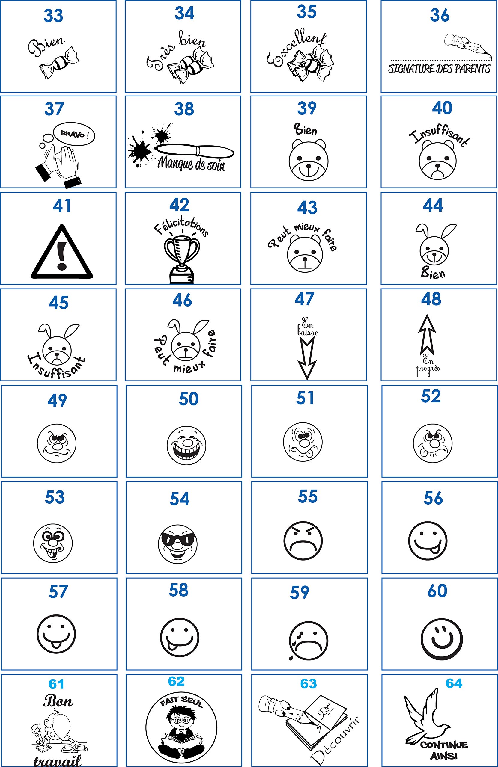 Tampons Enseignants | Lot de Tampons Auto-Encreurs de Présentation Tampons Enseignants | Champion ! Motif Trophée Smiley, Tampon Auto-Encreur. Choix de Couleur Tampon Ecole Pour Enseignant Lot 10 Tampons Encreurs - Bois - Smiley - Appréciation - Enseignant - Professeur - Ecole Tampons Appréciation école Bois Caoutchouc Tampons encreurs écoles en bois pour la correction des copies. Pack de 4 tampons bois à encrage séparés dimensions fourni avec une empreinte caoutchouc Lot de 3 Tampons Auto-Encreurs Smiley Pour Enseignants - Professeurs - Papier - Ecole - Courrier... Ces tampons appréciations sous forme de smiley et évaluations sont à destination des enseignants ou pour la déco. Tampons encreurs imprimant un smiley signifiant une appréciation Utilisation idéale dans le cadre de l'école Conviendra parfaitement aux enseignants et professeurs pour corriger les copies