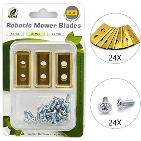 Accessoire Jardin Robot 36 Lames Robot Tondeuse Mammotion Luba - Acier Titane Réversible Kit Lames Rechange (LUBA AWD 1000 à LUBA AWD 5000 | LUBA 2 AWD 3000 à LUBA 2 AWD 10000 | YUKA 600 à YUKA 1500, etc., ) Kit Lames Robot Tondeuse Yuka Accessoire Tondeuse Robot Headley Tools Lot 36 Lames Titane Pour Tondeuses Robot Mammotion Luba Et Yuka - Avec Vis Et Rondelles Headley Tools 36 Pieces Lames De Rechange Luba AWD La lame avec un design à 2 trous peut être inversée et utilisée des deux côtés, et peut être utilisée jusqu'à 4 fois. Installation du kit plateaux de coupe pour robot de tonte LUBA 1 et 2 36 ensembles de lames de rechange pour tondeuse à gazon, lames métalliques, accessoires de tondeuse robot universels pour mammotion Luba Yuka... Matériel résistant aux intempéries inclus : arrêtez la rouille dans ses rails avec nos vis galvanisées et nos rondelles anti-vibrations. Chaque lame à double tranchant est fabriquée en acier inoxydable résistant à la rouille et en alliage de carbure de titane – conçue pour s'attaquer aux ronces britanniques difficiles et aux terrains inégaux sans effort, gardant votre pelouse impeccable saison après saison des pluies Efficacité de bricolage pour les Britanniques : changez les lames de rechange ternes pour Mammotion en quelques minutes, pas en quelques heures Le kit pré-emballé comprend toutes les vis/rondelles nécessaires pour un changement sans tracas – parfait pour préparer les fêtes de jardin d'été de dernière minute ou pour lutter contre les poussées soudaines de croissance de pelouse après les douches Taille de la lame : 35 x 18 x 0,6 mm, lame à double trou, diamètre du trou 5,2 mm. Design à double tranchant et réversible : retournez ces ingénieuses lames Luba de 35 x 18 mm pour utiliser les deux côtés Le design astucieux à 2 trous offre 4 arêtes de coupe par lame - Tranchez proprement à travers l'herbe luxuriante comme les pelouses de Wimbledon, tout en réduisant considérablement les coûts de remplacement pour l'entretien de votre jardin Type : lame de tondeuse à gazon avec vis et rondelles.