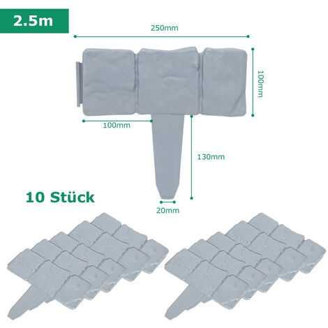 Jardin Bordure Plastique Lot De 10 - Bordures De Jardin Décorative Bordure De Jardin Plastique Bordure Pierre BORDURE Bordure de pelouse flexible Fabriqué en plastique polypropylène, longueur par élément 25 cm, hauteur 23 cm. Facile à util r Le montage se fait simplement en s'intégrant dans le sol, et grâce au système d'emboîtage, les bordures de pelouse peuvent être facilement reliées les unes aux autres Lot de 10 Bordures jardin FISHTEC effet Pierre pour Parterre de Jardin, Allée, Pelouse - Décoration d'extérieur - Achat & prix Aspect pierre : le design de la texture dans la pierre d'imitation le rend très approprié pour différentes fleurs, herbe, arbres pour rendre le jardin plus propre et plus beau Lot De 50 Bordures De Pelouse Aspect Pierre - 12,5 M - En Plastique - 1... Facile à installer : bordure de parterre de jardin, pièces simples à emboîter qui s'enfoncent simplement dans un sol mou. L'aspect pierre naturelle d'un bord de pelouse en plastique, imitation pierre est une belle décoration pour votre jardin et dégage un charme discret Clôture réglable : chaque bordure de pelouse peut être reliée entre elles, elle peut former des arcs, des cercles, des rectangles et d'autres formes, vous pouvez décorer votre pelouse ou votre jardin selon vos besoins Bordure de pelouse fabriquée en matériau durable avec une bonne résistance aux intempéries, aux UV, imperméable et d'autres propriétés pour garantir une longue durée de vie.