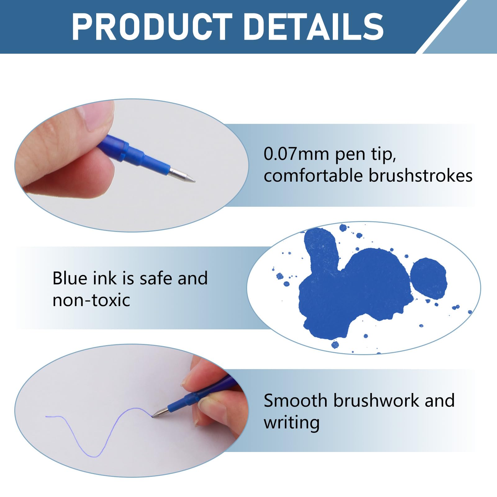 Idéales pour les prises de notes, les croquis ou les documents nécessitant de la précision, elles sont parfaitement adaptées aux utilisateurs recherchant une expérience d’écriture agréable et propre. PILOT Roller effaçable à encre thermosensible FriXion Ball 07mm... Leur encre effaçable permet de corriger rapidement les erreurs, ce qui en fait un choix idéal pour les étudiants qui prennent souvent des notes, les enseignants ou encore les professionnels qui doivent rédiger des documents importants. 【Recharge effaçable 0,5 mm – Lot pratique de 24 pièces】Ce lot comprend 24 recharges pour stylo effaçable, avec une pointe fine de 0,5 mm et une longueur standard de 11 cm, adaptées à de nombreux stylos effaçables de type roller ou bille. Recharges Effaçables Lot De 10 Recharges De Stylo Effaçables Rétractable 0,5 Mm, Bleu, Hauteur 11cm, Compatibles Avec KCatsy Stylo Effacable Rétractable, Mines De Rechange Pour Stylo Gel Effaçable Encre Thermosensible Recharges Pilot Frixion Bleu Ces recharges sont compatibles avec plusieurs modèles de stylos effaçables de type Pilot Frixion en bleu 0,5 mm, et assurent une expérience d’écriture fluide et continue, tant pour vos projets personnels que professionnels. Couleur Bleu, écriture nette et régulière, idéale pour un usage quotidien. Ce système vous permet d’économiser tout en réduisant les déchets plastiques, contribuant ainsi à un usage plus durable. Pratiques et fiables, elles vous garantissent une écriture claire et nette à tout moment. Chaque recharge contient suffisamment d’encre pour écrire jusqu’à 300 mètres, offrant une durée de vie bien supérieure aux cartouches classiques. Avantage Recharge économique et écologique, évite de jeter le stylo complet. Grâce à la technologie effaçable, les erreurs peuvent être corrigées par simple frottement, sans abîmer le papier et sans laisser de traces gênantes. Recharge effaçable 0,5 mm - Lot pratique de 24 pièces]Ce lot comprend 24 recharges pour stylo effaçable, avec une pointe fine de 0,5 mm et une longueur standard de 11 cm, adaptées à de nombreux stylos effaçables de type roller ou bille Caractéristiques Écriture fluide et confortable, effaçable facilement sans bavures ni traces. Pour une conservation optimale, évitez toutefois d’exposer les recharges à des températures élevées afin de préserver la qualité de l’encre thermosensible. ZTTD Stylos Gel Rétractables Effaçables, Rechargeables et Rétractables, Pointe Fine 0.7mm, Encres de Couleur Assorties pour Dessin et Écriture, 12 Pcs