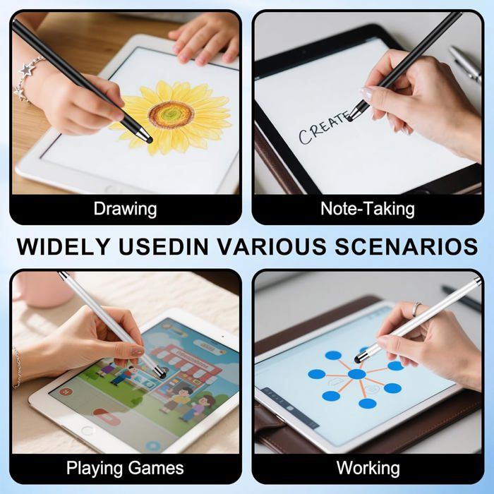 Stylo Tablette Smartphone Double Pointe Accessoire Tactile PDA Stylet Lot De 10 Stylets Pour écrans Tactiles - Universel, Aluminium, Finition Brillante Multicolore Accessoire Tablette Tactile Protection Contre Les Rayures Stylos écran Tactile Lot De 10 Stylets Universels Jsdoin - Pour Compatible avec smartphone, tablette et divers appareils avec écrans tactiles capacitifs. Type : Stylet pour écran tactile. Matériel : Métal. Couleur : envoyé... Son design anti-rayures protège votre appareil des traces de doigts, des taches et des rayures, gardant votre écran impeccable. Parfait pour libérer la créativité et améliorer la productivité avec des performances fluides et sans décalage. Facile à utiliser : il suffit de le prendre et de commencer à créer à tout moment sans avoir besoin d'appairage Bluetooth ou de charge. Haute précision et protection contre les rayures : ce stylet pour écran tactile est équipé d'une pointe en caoutchouc très sensible qui glisse sans effort sur l'écran, offrant une précision parfaite pour une écriture, un dessin et une navigation fluides. Le stylet offre une précision supérieure par rapport à l'utilisation d'un doigt, répondant efficacement au problème d'imprécision causée par les gros doigts. Ensemble de stylets : obtenez 10 stylets de différentes couleurs à un prix imbattable, pas besoin de crayons coûteux. Vous pouvez partager ces stylets avec vos amis ou votre famille. Lot 1-10X Stylets Stylo Stylet Capacitif Ecran Tactile pour Ipad Iphone Tablette ; Longueur · 10,5cm ; Diamètre · 0,7cm ; Matière · Aluminium ; Condition: Neuf...