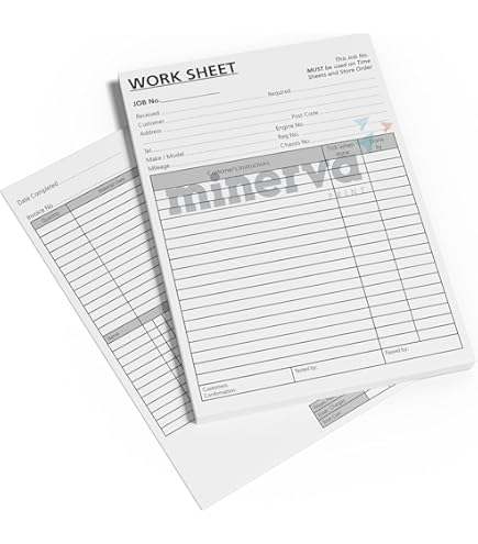 Ce bloc de 50 feuilles A5 est fait pour noter les temps et coûts de réparation. Imprimé recto-verso sur carton blanc solide, c'est pratique pour organiser ton... Sur le devant de chaque feuille se trouve un espace pour les détails et les instructions du client, y compris les colonnes de main-d'œuvre et de pièces. Impression professionnelle sur papier blanc. Feuille De Réception Client Recto Verso Lot De 100 Cartes Simples - Feuilles De Papier - Format A5 - Doré Métallisé - 250 G-M² - 14,8 X Suivi Travaux Véhicule Devis Garage Les feuilles peuvent être complétées dans le bloc ou retirées. Lot De 5 Feuilles Abrasives En Maille Grain 150 11,4 X 27,9 Cm Pour... Cartes de temps et de coûts de réparation et d'entretien pour garage Cartes de visite personnalisées pour réparation automobile / 100 cartes de visite personnalisées pour mécanicien / 5,1