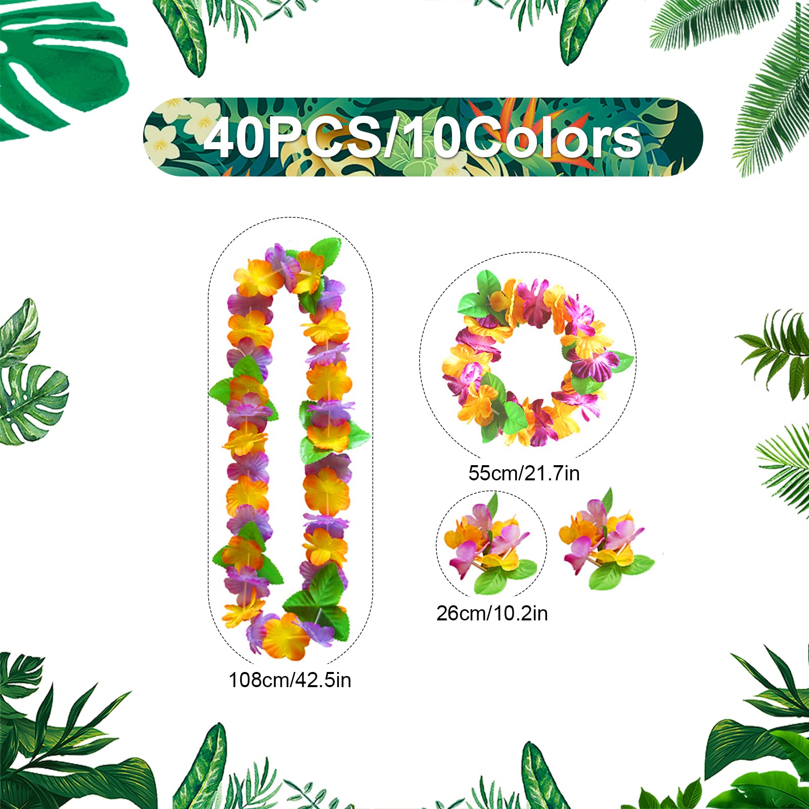 Circonférence du bandeau à fleurs hawaïennes : 55 cm. Comprend 10 colliers de couronne hawaïenne, 10 bandeaux hawaïens, 20 bracelets élastiques à fleurs hawaïennes, quantité suffisante et couleurs pour les adultes et les enfants pour correspondre aux robes, jupes, bikinis, etc. Matériau de qualité supérieure : les colliers hawaïens Leis sont fabriqués en tissu polyester de qualité, léger et respirant, doux et confortable à porter tout au long de la journée tout en étant durable. Circonférence du collier hawaïen : 108 cm. Kit Hawaïen Bleu : Collier, coiffe et bracelets Ensemble de Leis hawaïen : vous recevrez 40 pièces de décorations de fête hawaïennes Luau. Profitez simplement de votre fête hawaïenne Caractéristiques : Matériau : tissu polyester., Couleur : multicolore. Lot de 12 jupes hawaïennes en herbe hula et 12 bracelets hibiscus, multicolores de 40 cm, jupes d'hibiscus élastiques pour enfants et adultes, décorations... Large application : la belle guirlande hawaïenne est adaptée pour les adultes et les enfants à porter lors de fêtes à thème hawaïen, fiançailles, enterrement de vie de jeune fille, fête de remise de diplôme, anniversaire, fête sur le thème floral, carnaval de vacances, bal de fin d'année, fête cosplay, fête sur la plage, fête de piscine, nuit hawaïenne, fêtes à thème tropical, amusez-vous et frappez votre fête ou votre bar tiki. Lot de 40 guirlandes hawaïennes de Leis hawaïennes comprenant un collier, des bandeaux et des bracelets pour déguisement hawaïen, plage tropicale, Luau, Aloha, piscine, décorations de fête Décorations de fête tropicales : L'ensemble de guirlandes hawaïennes Leis est parfait pour les fêtes sur la plage, les fêtes d'anniversaire, les fêtes hawaïennes au bord de la piscine, les fêtes de mariage, les fêtes de remise de diplôme et toute fête tropicale. Taille : la circonférence du collier à fleurs hawaïennes est de 108 cm, le bandeau de fleurs hawaïennes est de 55 cm, le bracelet Luau mesure 26 cm. Colliers Fleurs Polyester élastique Multicolore Lot De 12 Jupes Hawaïennes En Herbe Hula Et 12 Bracelets Hibiscus, Multicolores De 40 Cm, Jupes D'hibiscus élastiques Pour Enfants Et Adultes, Décorations De Fête Hawaïennes Luau Bracelet Fleuri Découvrez notre vaste gamme de 1/2/4/6/8/10 sets de guirlandes de fleurs hawaïennes, colliers de leis hawaïens, guirlandes de fleurs d'Hawaï, articles de fête sur le thème tropical d'Hawaï, fleurs d'hibiscus tropicales pour les fêtes de piscine d'été et les fêtes sur le thème d'Hawaï, pour la décoration DIY, déguisements et... Le collier, le bandeau et le bracelet sont élastiques et peuvent être portés par les adultes et les enfants.