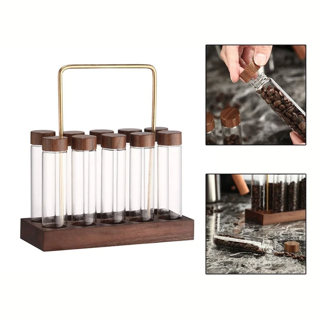 Fioles Café Dose Unique 20g Lot De 12 Tubes De Rangement Pour Grains De Café Avec Support Et Entonnoir Pour Expresso~p117548879 Tubes Café Dose Unique Uniqal Botes de rangement hermétiques pour grains de café 18 l avec MOULIN À GRAINS de Café TréMie à Dose Unique pour Broyeur à Soufflet en... Tube de rangement en verre polyvalent car il peut être utilisé pour stocker des grains de café, des feuilles de thé, des épices, des sels de bain ou vos grains artisanaux. Idéal pour un café à la maison ou pour présenter des grains de café dans un magasin Avec une base en bois pour maintenir les tubes, parfait pour un bar à café ou afficher les grains sur le plan de travail Prépeser les grains facilite la préparation de votre café du matin ou lorsque la famille/les amis viennent vous rendre visite Tubes de stockage pour grains de café à dose unique de 12 x 3 cm (60 ml), peuvent généralement contenir jusqu'à 20 grammes de grains. La capacité maximale du tube varie en fonction du niveau de torréfaction des grains de café. Dimensions du support en bois : 21 x 8 x 2,5 cm Trémie à Dose Unique pour Moulin à café, Poubelle à Grains soufflant...