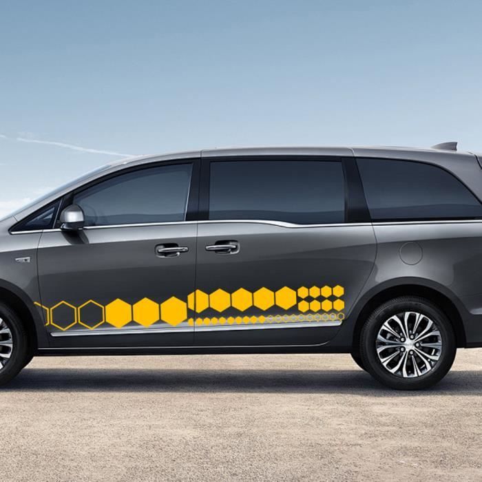 Accessoire Tuning Personnalisation Lot De 2 Autocollants Pour Pare-soleil De Voiture ... - Grandado Autocollant Pilier B Voiture XIMINZ Lot de 2 autocollants en nid d'abeille en PET pour voiture, imperméables et résistants au soleil, autocollants de pilier B imprimés en 3D, autocollants personnalisés pour porte de voiture, noir Lot de 2 autocollants imperméables en PET pour pilier B de voiture, motif nid d'abeille, 50 x 25 cm (A) ; A. $12.78 ; B · $14.32 ; C · $12.78... *Décoration parfaite : avec son design unique en nid d'abeille, cet autocollant améliore l'esthétique de votre véhicule, offrant un look élégant et moderne qui distingue votre voiture des autres. * Matériau imperméable : fabriqué à partir de matériaux imperméables de haute qualité, cet autocollant est conçu pour résister à diverses conditions météorologiques, il reste intact et vif pendant une longue période. * Compatibilité haute universalité : oui., * Numéro OEM : non. Caractéristiques : * Installation facile : les 2 autocollants étanches pour pilier B de voiture sont conçus pour une application simple, vous permettant de les placer directement sur la tige de porte de votre voiture sans aucun outil spécial ou compétences nécessaires. Contenu de l'emballage : 2 autocollants pour pilier B. Matériau imperméable résistant : fabriqué à partir de matériaux imperméables de haute qualité, cet autocollant résiste à diverses conditions météorologiques tout en gardant ses couleurs vives intactes. Dimensions à prendre en compte : chaque autocollant mesure 50 cm x 25 cm ; cela s'adapte à l'emplacement souhaité avant de faire un achat. Le pack contient 2 stickers de 50x25 cm en PET de qualité qui résistent à l'eau et aux UV. Collage ultra simple sans outil - tu décolles la protection et tu...