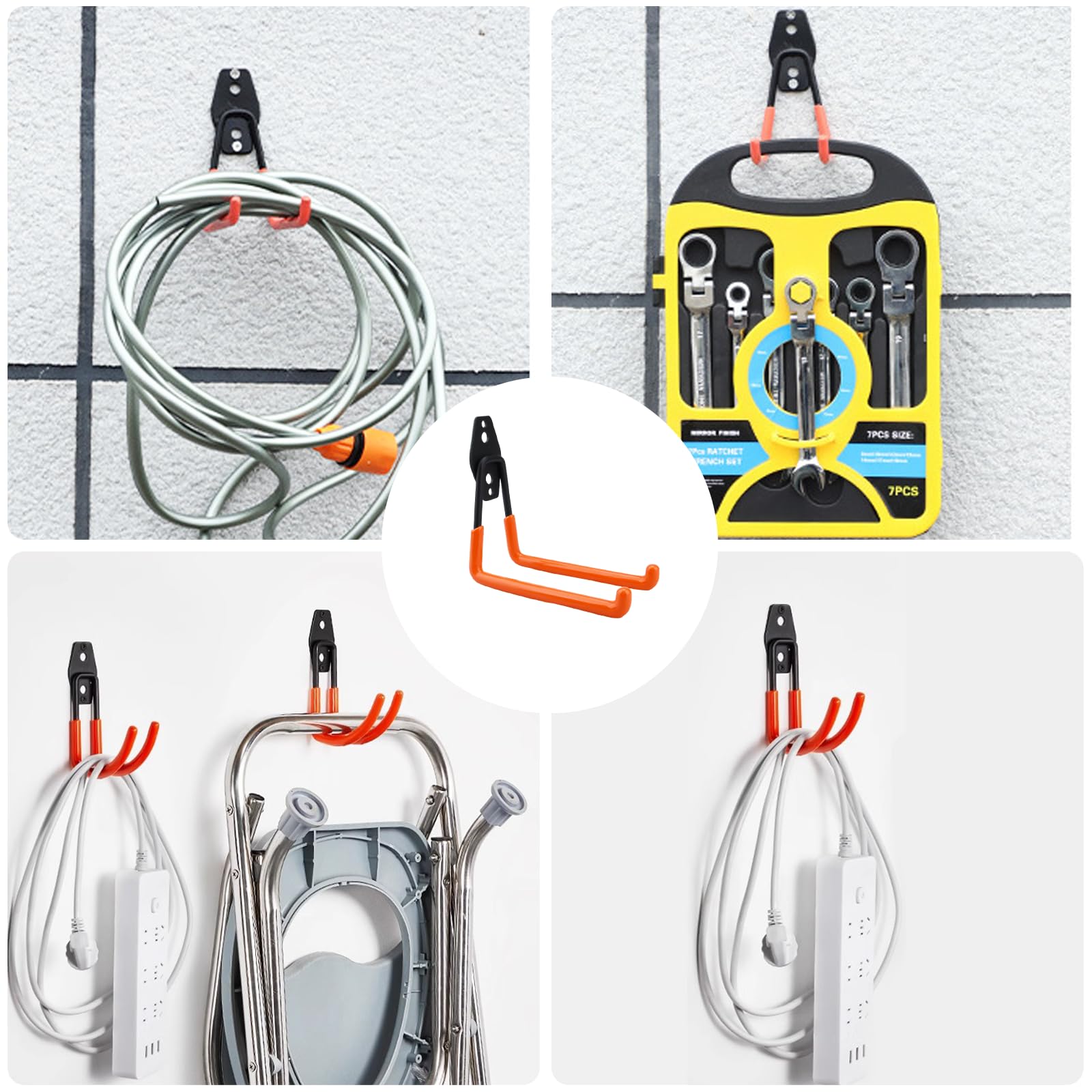 Garage Lot 14 Rangement Garage Crochets Pour Vu00e9los Garage Lot De 2 Pour Garage - Pour Fixation Murale - Pour Outils U00e9lectriques - U00c9chelle Crochet Garage Support Canne A Peche Crochets Muraux Installation facile et rapide – Livré avec vis et chevilles pour fixation murale sur béton, bois ou briques. Nos crochets muraux s'adaptent parfaitement aux cloisons sèches, montants muraux et autres types de murs rapidement et facilement.RANGEZ VOTRE GARAGE - Nos crochets utilitaires en acier sont idéaux pour maintenir des outils, en particulier des objets lourds comme des chaises pliantes, des échelles télescopiques, des tuyaux de jardin, des... Haute Capacité de Charge Adaptée à Divers Types de Mur Selon le type de mur, la capacité de charge varie : jusqu’à 40 kg sur béton et briques, jusqu’à 15 kg sur plaques de plâtre, assurant une fixation sûre et stable. Ensemble de 14 Crochets Muraux Lourds Multifonctions Ce kit comprend 14 crochets doubles en métal solides, de différentes tailles et formes, parfaits pour ranger en toute sécurité outils, vélos, échelles, etc. Idéal pour garage, atelier ou sous-sol. Description du produit Matériaux Durables et Robustes Fabriqués en métal de haute qualité avec revêtement protecteur, résistants à la rouille et à la corrosion, parfaits pour une utilisation prolongée en garage et atelier. Optimisez l’Espace et Gardez l’Ordre Suspendez efficacement vélos, outils de jardinage, câbles ou tuyaux, optimisant l’espace et maintenant un environnement ordonné. Sur les murs en plaques de plâtre : tous les crochets petits et grands courbés jusqu’à 15 kg, les grands crochets en L 8 kg. Gain de place efficace – Organisez votre garage ou atelier en accrochant vélos, tuyaux, outils de jardin ou rallonges au mur pour un rangement optimisé. Crochets de Rangement en Métal,Porte-Outils en tôle d'acier,Support