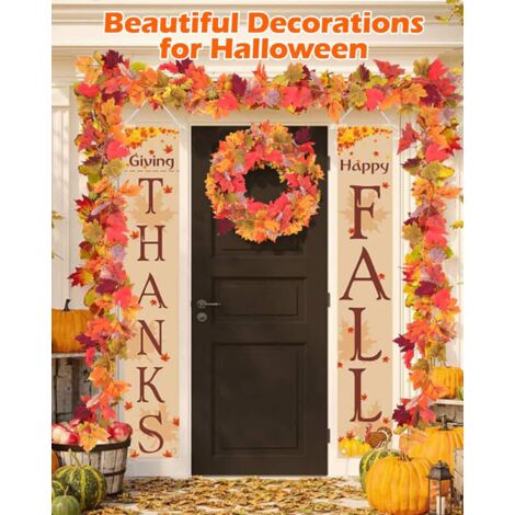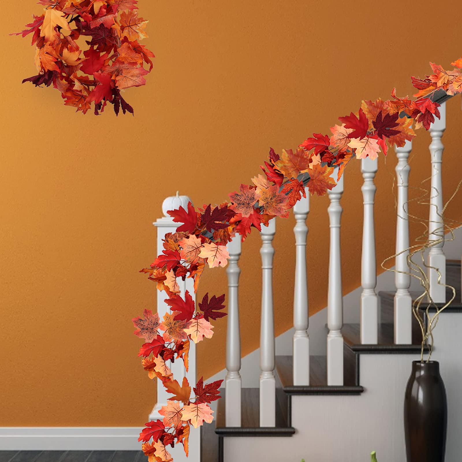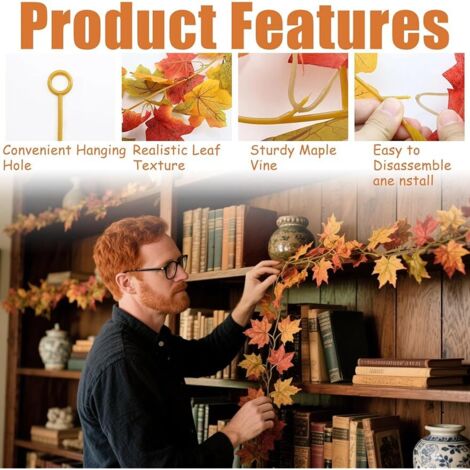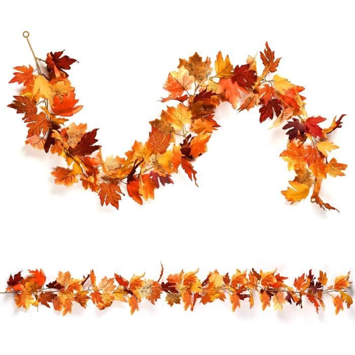 Lot De 24 Feuilles D'Érable Artificielles De 2, À Suspendre, Guirlande... Matériau de la guirlande : les décorations de guirlande de feuilles d'érable d'automne pour la maison sont faites de feuilles de tissu de soie et de vignes en... Lot De 2 Guirlandes De Feuilles D'érable D'automne à Lot de 2 guirlandes de fleurs de Noël avec poinsettia - Fonctionne avec des piles - Guirlande