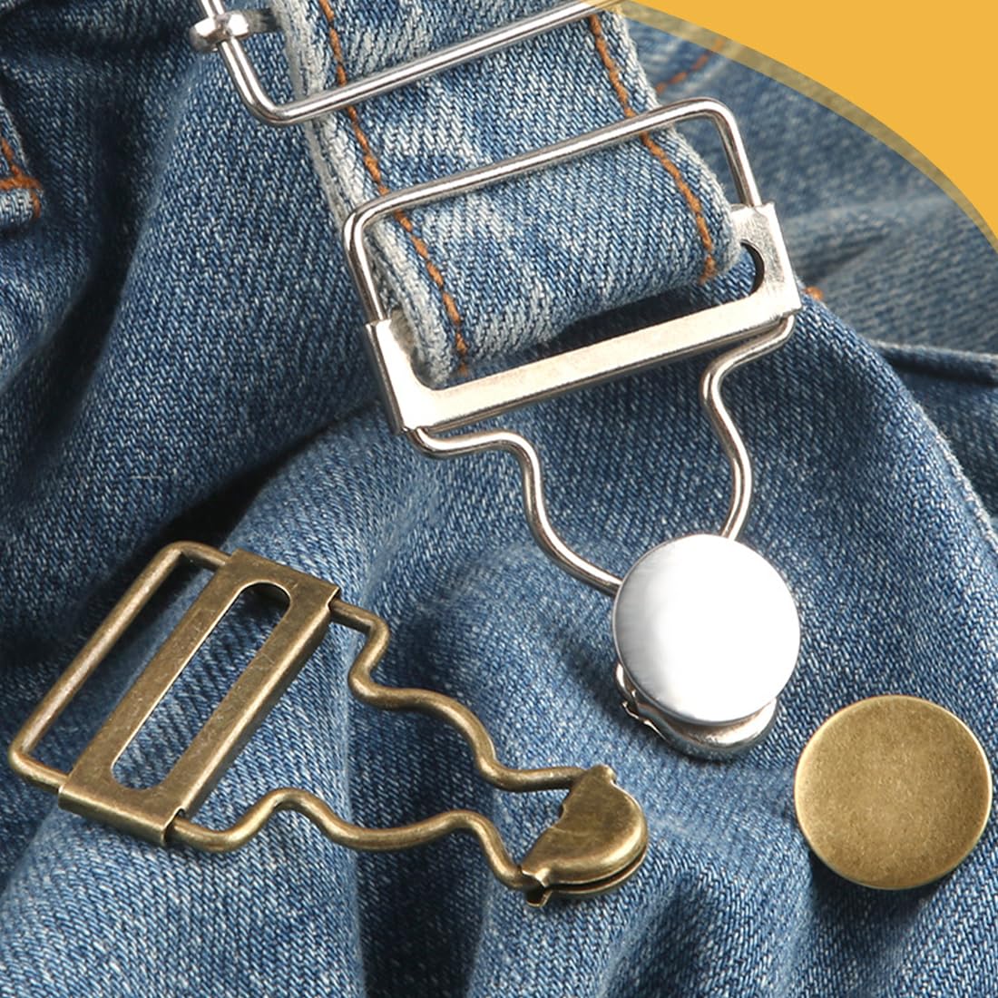 Accessoires Remplacement Jean Lot De 2 Paires De Boucles De Bretelles Réglables En Métal Bronze Avec Boucle Rectangulaire, Accessoires De Rechange Pour Salopette, Pantalon, Jean, Veste, Bronze, Modérer Boucles Salopette Boucle coulissante métal inox 40mm - Doré BOUCLE Coulissante métal x 2 - 25, 32 ou 38 mm - Laiton Remplacement pour vieux boutons : ces boucles sont idéales pour remplacer vos boutons de jean anciens ou endommagés pour redonner à vos vêtements un aspect neuf Boucle Coulissante En 2.5 Cm Métal Colori Argent, Noir , Ou Bronze... Facile à utiliser : ces boucles peuvent être utilisées pour fixer des salopettes, des pantalons en laine, des bretelles ou des pantalons de neige, ce qui les rend très pratiques - Diamètre intérieur : env., 3,8 cm., Contenu : 4 boutons. Utilisation polyvalente : parfaites pour les vêtements, les sacs à main, les sacs à dos et de nombreux autres projets d'artisanat, ces boucles sont polyvalentes - Dimensions : environ 5,8 x 4 x 0,15 cm.