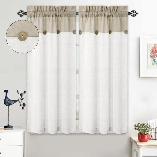 Utilisation polyvalente : le design simple et moderne s'adapte parfaitement à différents styles de décoration, que ce soit dans le salon, la chambre ou le bureau, et s'intègre harmonieusement dans n'importe quel concept de pièce. Lot de 2 rideaux semi-transparents en lin vert sauge de 259,1 cm de long Rideaux Courts Aspect Lin 63x63.5 Cm Lot De 2 Lot De 2 Rideaux Courts Voilage Fenêtre Store Romain Brise Bise Violet Brise Bise Lin Apportez de la lumière et de l'élégance à votre maison. Dimensions (L x l Hauteur x largeur : 63 x 63,5 cm, 63 cm est 1 pièce de hauteur, 63,5 cm de large Hauteur x largeur : 78 x 63,5 cm, 78 cm est 1 pièce de hauteur, 63,5 cm de large Hauteur x largeur : 93,5 x 63,5 cm, 93,5 cm est 1 pièce de hauteur, 63,5 cm de large Remarque : 1., Les mesures étant prises à la main, les tailles indiquées peuvent varier de 2 à 3 cm., 2., Veuillez noter qu'une légère différence de couleur est possible en raison des différents appareils photo ou de l'environnement lumineux., 3., Repasser avant de l'accrocher. Lot de 2 rideaux brise-bise courts en lin - Style aison de capagne... Entretien facile : ces rideaux sont lavables en machine à l'eau froide et peuvent être séchés en cycle délicat sans utiliser d'eau de Javel. Caractéristiques : les rideaux sont fabriqués avec une technique de tissage jacquard, et la texture fine du tissage leur donne un aspect lin unique. Conception semi-transparente : le design semi-transparent des rideaux filtre parfaitement la lumière extérieure, gardant l'intérieur lumineux tout en créant une atmosphère chaleureuse et privée. Bien que le matériau soit en polyester, il ressemble à du lin naturel et a un toucher fin qui montre un goût simple mais élégant.
