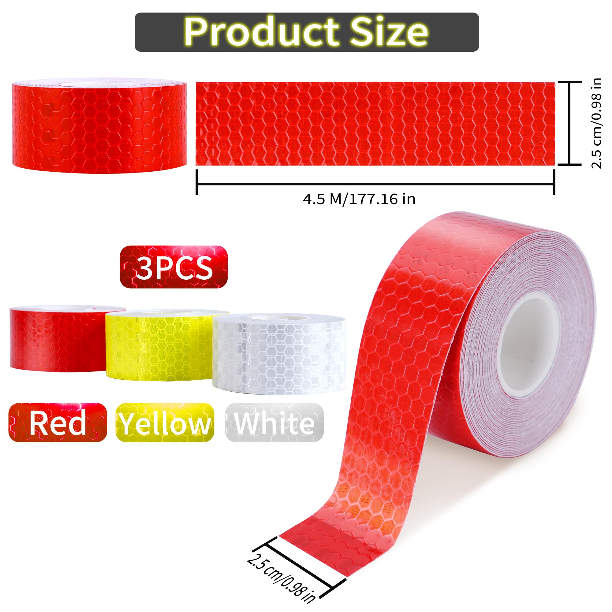 Lot de 2 rubans et adhésifs réfléchissants rouges 10 m x 2 cm Autocollant Danger Arrow Ruban Réfléchissant Jaune et Noir Bande... Ruban Avertissement Nuit Lot De 2 Rubans Et Adhésifs Réfléchissants Rouges 10 M X 2 Cm, Adhésif Réfléchissant Imperméable, Bandes Réfléchissantes Pour Moto Et Vélo Ruban Sécurité PVC 10 Mm X 8 M Inclus : 2 x Jeu de Bandes Réfléchissantes Suffisamment pour répondre à vos besoins quotidiens. Bande réfléchissante autocollante de sécurité - 5 300 cm Jaune... Contenu de L'emballage : Vous recevrez 2 rouleaux de ruban réfléchissant en 2 couleurs différentes (jaune et blanc), chaque rouleau a une longueur de 8 m/314., 96 pouces et une largeur de 10 mm/0., 39 pouces. Matériau:Fabriqué en PVC, matériau imperméable et résistant à l'usure, longue durée de vie, ne se décolore pas lorsqu'il est exposé au soleil ou à une forte pluie, se décolle sans laisser de résidus et ne nécessite pas de nettoyage supplémentaire. Large Application:Peut être utilisé pour avertir ou marquer des endroits spécifiques, tels que les véhicules d'urgence, les vélos, les fauteuils roulants, les barrières de sécurité, les bateaux, les vêtements, les casques, les marquages routiers, les installations de circulation, les zones à faible luminosité, etc, afin de vous fournir une garantie de sécurité lorsque vous conduisez. Super Réfléchissant:Adoptant la technologie de réflexion prismatique avec une performance de réflexion à grand angle, les multiples cubes microcristallins rendent le ruban fluorescent plus accrocheur, maximisant la visibilité du véhicule pendant la journée et la nuit pour éviter les dangers.