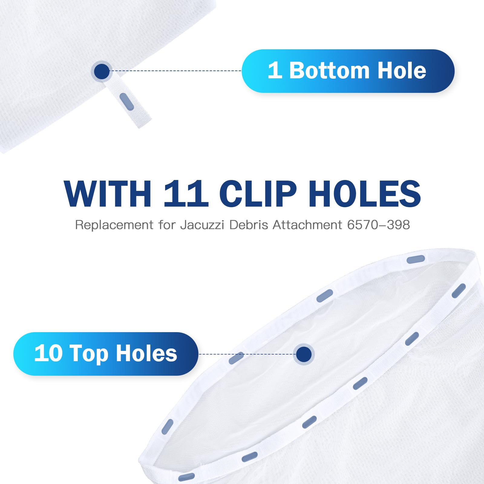 Sac Débris Compatible J-300 J-400 Lot De 2 Sacs De Fixation Pour Jacuzzi 6570-398 Hot Tube, Filtre Filtre Débris Bain à Remous Épuisette de surface - TRAHOO - Filet Skimmer Piscine - Chaussette CLIP DE FIXATION POUR FAÎTIÈRE/ARÊTIER CONIQUE DE 40 ET 50 (SACHET DE... * Fixation pratique : doté de 11 trous, permet une fixation facile et sûre à la vôtre, ce qui rend l'installation simple sans avoir besoin d'outils supplémentaires. * Emballage complet : chaque achat comprend un sac à débris 6570-398, offrant tout ce dont vous avez besoin pour garder le vôtre propre des débris dès la sortie de la boîte. *Compatibilité spécifique : ce sac filtrant est spécialement conçu pour s'adapter à certains modèles, il est donc important de noter qu'il ne fonctionnera pas avec les bacs de collecte J-300 2002-2013 ou J-200, vous sélectionnez la bonne pièce pour vos besoins. Caractéristiques : * Ajustement parfait : le sac de filtre 6570-398 est conçu pour s'adapter parfaitement à plusieurs modèles de baignoire, y compris 2013+ J-400, 2014+ J-300, 2012+J-400 et tous les modèles de collection J-585, J-575, compatibilité et performance optimales. Taille : comme sur l'image., Couleur : blanc. Matériau en maille : fabriqué à partir de tissu en maille de nylon solide, ce filet d'écumoire promet une longévité et une utilisation durable tout en gardant efficacement les débris hors de votre baignoire. Installation pratique : avec son design innovant avec 11 trous de clip, la fixation de ce sac filtrant à votre baignoire est rapide et ne nécessite aucun outil supplémentaire, améliorant ainsi la commodité de l'utilisateur. VGEBY Sac À Filet Léger Pour Skimmer De Feuilles Piscine Font Aidant À...