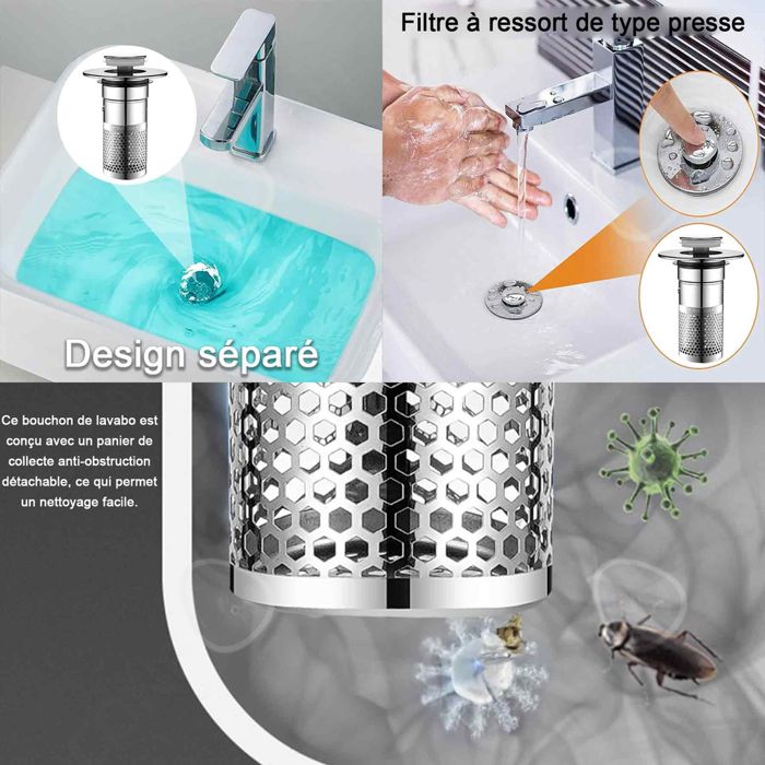 Il est réutilisable, le filtre d'évier de cuisine est idéal pour les éviers de cuisine et de salle de bain. Passoire évier Acier Inoxydable Lot De 2 Tamis D'u00e9vier De Cuisine En Acier Inoxydable Anti Bouchon Evier Design intelligent : La poignée de notre filtre d'évier s'adapte à la plupart des éviers de cuisine standard, lavabos et éviers communautaires. Tamis pliables Tamis 2 pièces Tamis pliable pour l'évier Tamis de cuisine en silicone robustes... Le design des trous éprouvé assure jusqu'à 3 fois plus d'efficacité de filtration que les tamis d'évier traditionnels. Ajustement optimisé : le filtre d'évier en acier inoxydable est adapté à la plupart des éviers de cuisine, lavabos et éviers communautaires. 2 Pcs, Évier Filtre de Vidange, Grille Evier Cuisine, en Acier Inoxydable, pour Évier de Cuisine... C'est un choix idéal que chaque foyer a besoin d'un filtre de vidange pour éviter les odeurs provenant des tuyaux. Passoire pour évier - Pas de bords tranchants, de sorte que vous ne vous blessez pas les mains, les trous de 2 mm de diamètre permettent à l'eau de passer rapidement tout en bloquant efficacement les particules alimentaires. Protection contre l'obstruction : le filtre d'évier avec une petite perforation haute densité de 2 mm assure un débit d'eau fluide, tout en recueillant efficacement tous les déchets et les saletés, afin que le système de rinçage ne soit pas bouché. Filtre évacuation Anti-bouchons 2 Tamis Évier Acier Inoxydable 11 Diamètre extérieur : 11 cm, diamètre intérieur : 8 cm, profondeur : 3,2 cm. Facile à nettoyer : contrairement à un tamis métallique, il était difficile de le nettoyer et de limiter le débit d'eau.