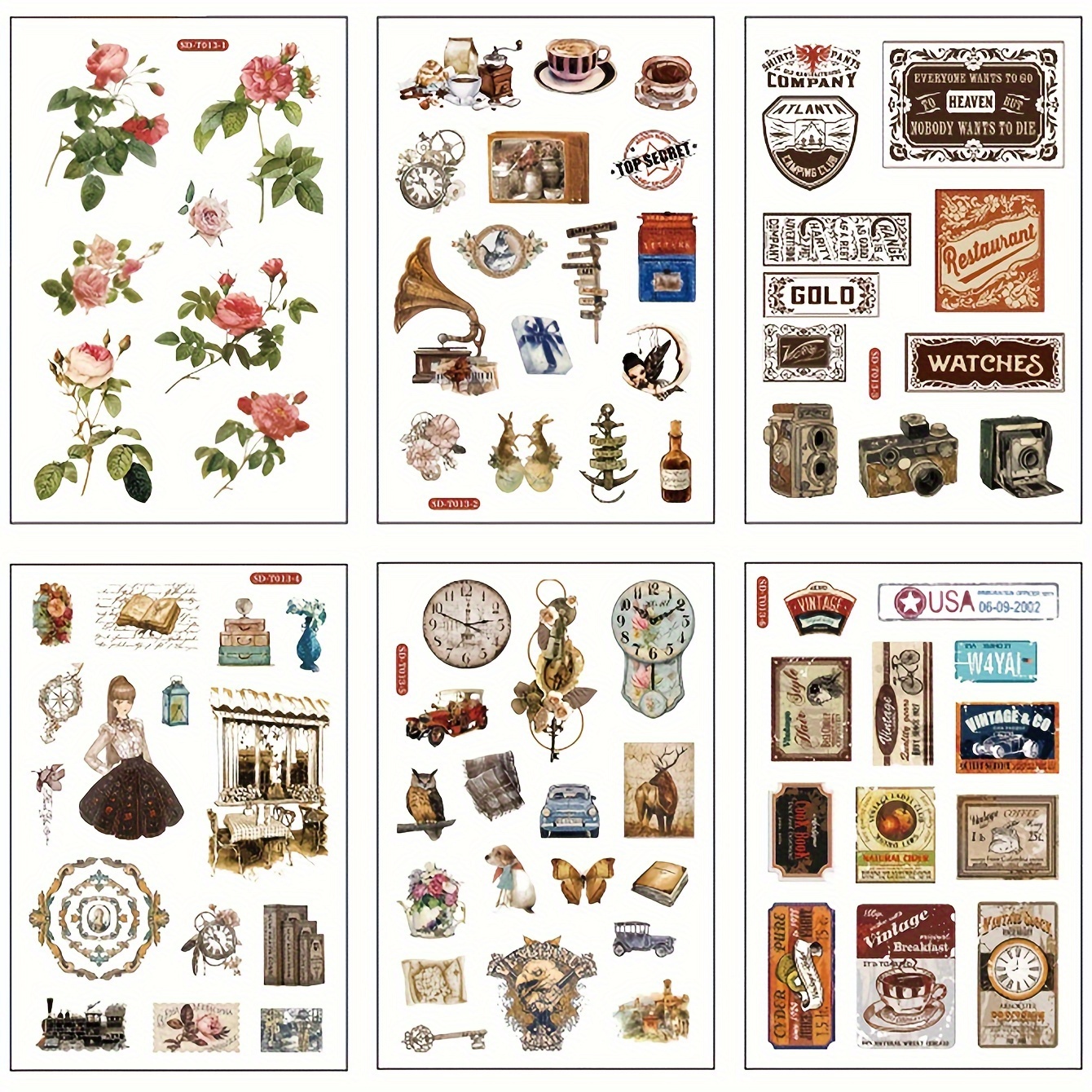 Set de vieux morceaux de pages de journaux déchirés papier déchiré de... Dimensions : se référer à la deuxième ou troisième image 【Scène applicable】 : parfait pour décorer le scrapbooking, les bullet journals, les collages de bricolage, l'art mixte, le découpage, les planificateurs journaliers, les agendas et les journaux, les travaux manuels en papier, la fabrication de cahiers anciens, les emballages cadeaux, les cartes de vœux faites à la main, les boîtes et colis, les albums photo, les dossiers, les enveloppes, les calendriers, les projets scolaires et plus encore Stickers étanches Décoration Journal ZXMNBH Lot De 20 Autocollants En PET étanches Pour Fournitures Scrapbooking ZXMNBH Contenu de l'emballage : 6 autocollants PET (autocollants) (6 motifs/1 de chaque) Marque. ZXMNBH ; Couleur. 1D2192-H ; Dimensions de l'article L x l x H · 50 x 49 millimètres ; Recommandation pour la surface. Papier, fenêtre, autres surfaces... ZXMNBH Caractéristiques du magasin : (1) Notre boutique propose environ 3000 produits différents liés au scrapbooking. MiyouLuna Lot de 90 autocollants rétro en PET à coudre - Éphémère
