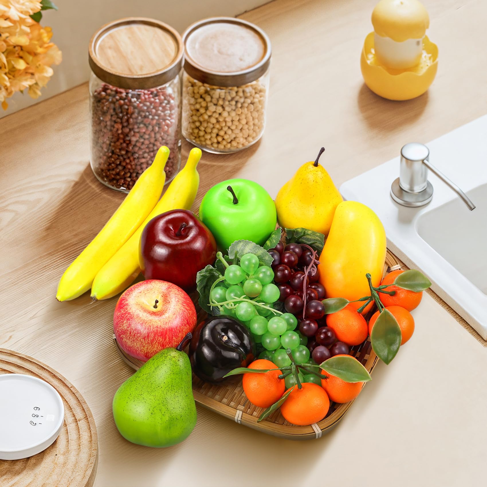 Grossiste faux fruits réalistes-Acheter les meilleurs faux fruits réalistes lots de la Chine faux fruits réalistes Grossistes en ligne Organisez avec un saladier de fruits de votre propre composition et laissez les fruits frais au frigo. Les fruits artificiels Déco Mundo se marie aussi bien avec une décoration basique, épurée qu'un design recherché Fruits En Mousse Plastique Décoration Fruits Artificiels Pour Table D'accueil Lot De 20 Fruits Artificiels Décoration - Pommes, Raisins, Citrons, Oranges - Mousse Et Plastique - Pour Centre Table, Photos, Fêtes Faux Fruits Réalistes Décoration Centre De Table Fête -Un bon complément aux décorations de fêtes et de vacances-L'ensemble de faux fruits contient une variété de fruits communs, 20 pcs de fruits mélangés pour les besoins de décoration de tous les jours. Ils ont un aspect réaliste et conviennent à la décoration intérieure. SURENHAP Faux fruits artificiels Modèle de Simulation de fruits... Quantité : Le paquet contient 20 faux fruits : pomme rouge x 1, pomme verte x 1, grosse pomme rouge x 1, poire verte x 1, mangue x 1, orange x 1, raisin vert x 1, raisin violet x 1, citron vert x 1, citron jaune x 1, prune x 1, banane x 2, fraise x 2, cerise x 5 Ils ne pourrissent pas et ne s'abîment pas, même s'ils sont placés pendant une longue période Large application : Les faux fruits sont réalistes et réutilisables. Décoration simple et magnifique : Les fruits artificiels ne conviennent pas seulement pour décorer le centre de votre table de cuisine, mais aussi pour décorer des fêtes, des mariages, des magasins, des supermarchés, des restaurants, des fermes, des expositions, etc.