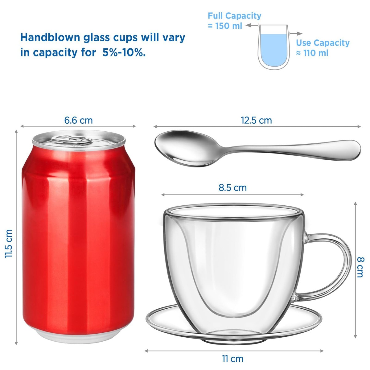 Glasark Krosno Latte acchiato Lot de 6 verres à thé à cappuccino avec anse - Verres à dessert Parfait pour une utilisation à la maison ou au bureau et un cadeau idéal pour les amateurs de café. Tasse A Cafe Transparente Bormioli Rocco Lot De 24 Tasses à Expresso En Verre Avec Poignée En Acier Inoxydable 100 Ml Tasses Expresso Verre 150ml Chaque tasse est équipée d'un anneau en bois de noyer naturel amovible. Qu’il soit serré, espresso, long, cappuccino ou latte, votre café mérite une tasse à sa hauteur. Fabriquées en France, les tasses à café en verre ® allient robustesse, praticité et design intemporel. Leur transparence unique révèle toutes les nuances de votre boisson chaude préférée Verres à cappuccino double paroi | Accessoires café | Café du Jour Design rétro élégant : les deux tasses à expresso se distinguent par leur design fin en verre transparent, combiné avec des anneaux en bois élégants, ce qui donne un look charmant. Matériaux de qualité supérieure : ces tasses à expresso sont fabriquées en verre résistant à la chaleur et en bois de noyer élégant. Remarque : avant d'utiliser le lave-vaisselle ou le micro-ondes, les anneaux en bois doivent être retirés ! Lot de 2 tasses à expresso : notre lot comprend deux tasses à cappuccino d'une capacité de 150 ml chacune. Les tasses à expresso résistent aux changements brusques de température de -15 °C à 150 °C. Spécification : Nom du produit : lot de 2 tasses à expresso Couleur : transparent/gris Taille du produit : comme indiqué sur l'image Contenu : 2 tasses à café.