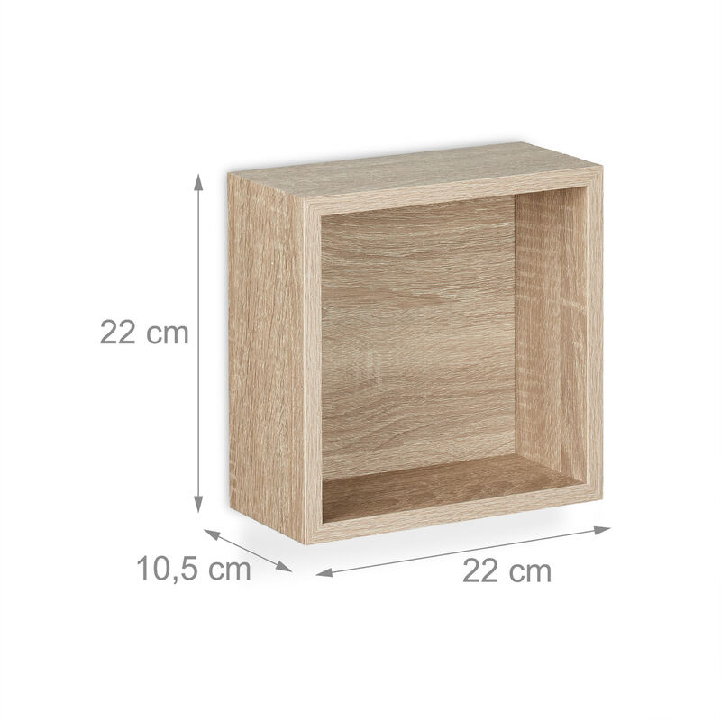 22 x 22 x 10,5 cm / env., 0,8 kg étagères Murales Carrées Lot 3 FineBuy Étagère Murale Lot De 3 Bois Massif Étagère En Bois Étagère à Livres [Sheesham] - Maison Rangement Bois Interieur 1x Étagère rectangulaire Étagères en cube pour le mur Lot pratique de 3 supports muraux dont une étagère rectangulaire et deux supports carrés Étagères murales en détail Montage au mur facile grâce aux encoches à l’arrière des supports Livraison sans objets de décoration Lot de 3 Étagères Murales Cube 30cm Blanc - Maison 10 ans d'expérience Dimensions intérieures H x L x P : env., 22,5 x 46,5 x 10,5 cm Étagères carrées H x L x P : env. Superbes rangements muraux pour le salon, la chambre d'enfant, l’entrée, etc En lot de 3 : Lot de supports muraux composé d’une étagère rectangulaire et de deux étagères carrées Découvrez notre gamme de Etagère murale - RELAXDAYS au meilleur prix sur . Retrait Gratuit sous 2h en magasin, Livraison sur RDV, à l'étage et dans la pièce de votre choix relaxdays étagère murale carrée lot de 3 - étagère - panneau mural... Satisfaction de la clientéle , Excellence d'entreprise De plus, ces rangements conviendront parfaitement aux murs d’un salon, d’un couloir ou d’une chambre d’enfant. Charge maximale par support : 8 kg , Matériau : MDF , Couleur : nature Relaxdays est une entreprise de E-Commerce au cœur de l'Europe spécialisée dans l'aménagement d'intérieur., Marque européenne , Standards européens