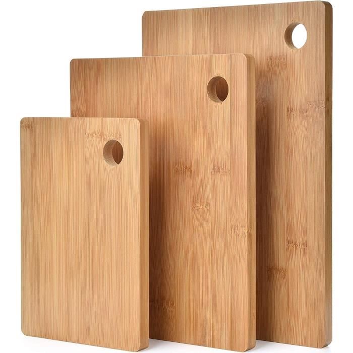 Fabriquées en bois naturel poli et robuste, ces planches à découper réutilisables sont conçues pour résister à une utilisation fréquente. Un accessoire de cuisine à la fois utile, esthétique et durable. Leur taille pratique est parfaite pour toutes vos tâches de découpe ou de préparation en cuisine, et la quantité fournie couvre tous vos besoins quotidiens. Chaque planche mesure environ 40 x 20 x 1,5 cm, une taille idéale pour découper pains, fromages, légumes, viandes, fruits ou pizzas, ou même pour les utiliser comme planches de service rustiques à table. Lot de 2 Planches à Découper Bambou 35cm Naturel Elles sont faciles à nettoyer à l’eau savonneuse et peuvent être entretenues avec de l’huile minérale alimentaire pour prolonger leur durée de vie. Conçues pour être aussi élégantes que fonctionnelles, ces planches peuvent servir à la fois pour préparer vos repas au quotidien et pour présenter vos créations culinaires de manière raffinée. Lot De 6 Planches À Découper En Bambou 22 X 14 Cm - Planche De Cuisine... C’est également un cadeau idéal pour une pendaison de crémaillère, Noël, ou un amateur de cuisine. Apportez une touche naturelle, pratique et chaleureuse à votre cuisine avec ce lot de 5 planches à découper en bois avec poignée. Contenu du colis:Vous recevrez 5 planches à découper en bambou, chacune mesurant 30 x 20 x 1,2 cm. Planches Découpe Bambou Lot De 3 Planches à Découper En Bambou Avec Rainure à Jus Pour Cuisine, Planche à Découper épaisse Pour Viande, Légumes Et Fruits, Planche à Fromage, Planche à Pain Ou Planche à Planche à Pain Charcuterie Bambou Planche à découper Deluxe en bambou Design pratique avec poignée et rainures:Chaque planche est équipée d’une poignée pour faciliter la prise en main et le transfert des aliments.
