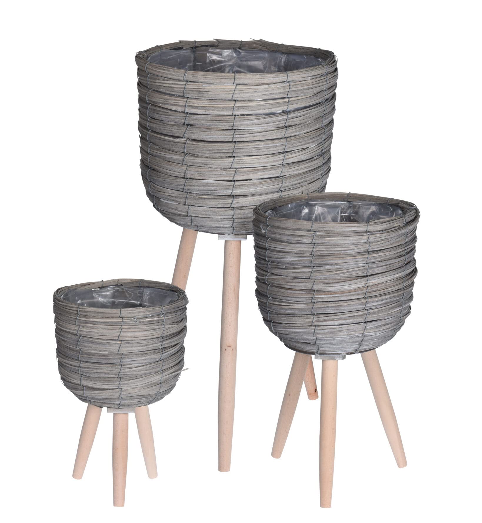 Description générale Support de fleurs en rotin gris, ce lot de 3 jardinières sur pieds en bois massif naturel apporte une touche chic à votre décoration intérieure ou extérieure. Les paniers en osier rotin sont conçus pour accueillir vos plantes tout en étant esthétiques et pratiques. Spécifications techniques Dimensions : environ 60 cm x 30 cm, 45 cm x 25 cm, 33 cm x 21 cm... Jardinière en rotin tressé sur 3 pieds - Pieds en bois massif Les paniers peuvent être plantés directement grâce au film intégré Lot 3 Pots Gris Hauteurs Différentes Lot De 3 Supports De Pots De Fleurs Trigone Noir Et Blanc à Prix Supports Plantes Hauteurs Différentes Matériaux : bois / métal / plastique - Couleur : gris / naturel Chaque support a un pot amovible (environ 17x15 cm pour les petits, 19x18 cm pour le grand) - pratique pour rempoter ou arroser. Le design est épuré et moderne... Dimensions : environ 60 cm x 30 cm - Environ 45 cm x 25 cm / env. Jardinière Pot de Fleurs avec pieds bleu gris 40x40x42 cm PP CVW58797