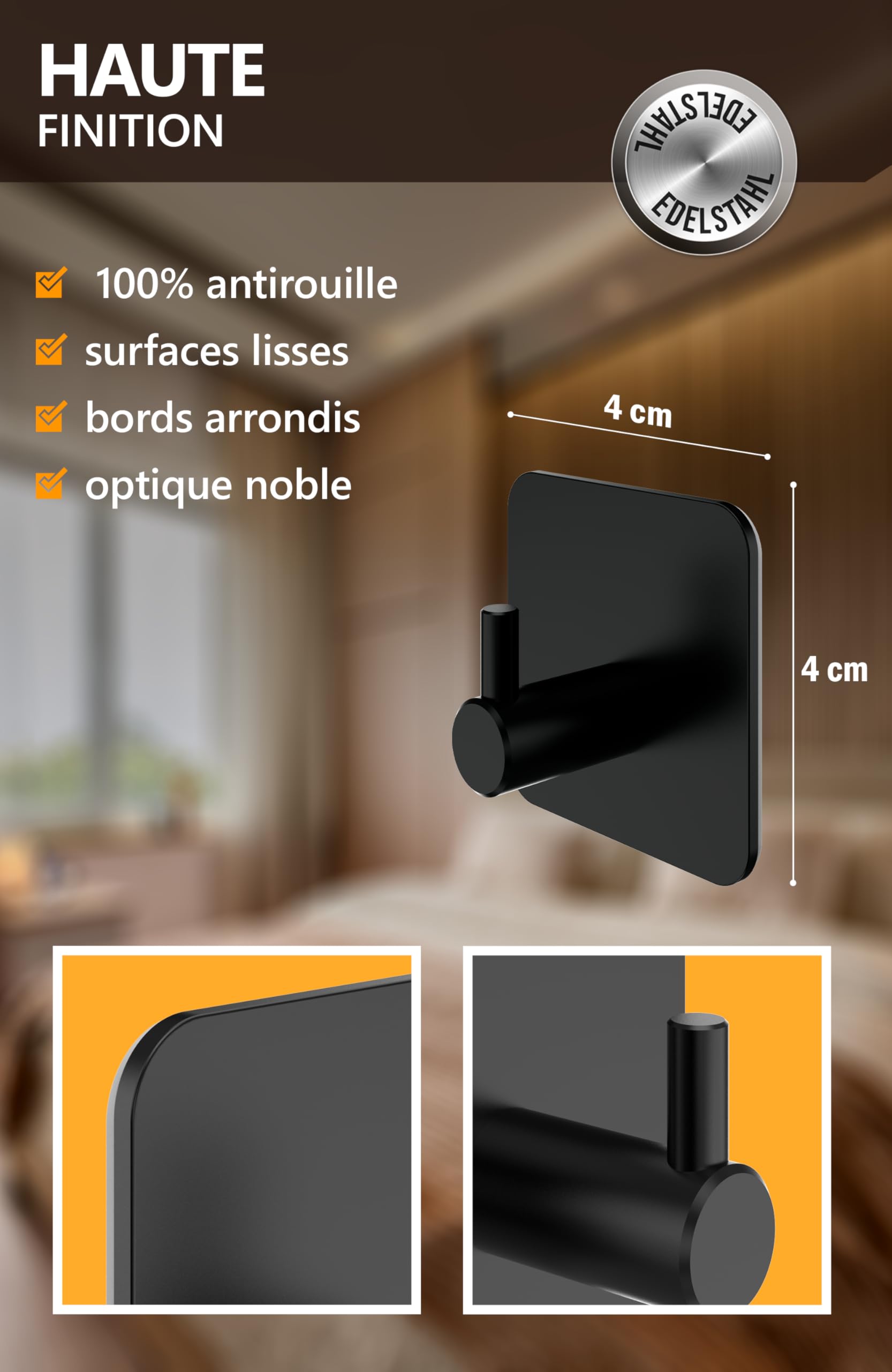 Team, Lot de 4 Crochets Adhésifs, Porte Manteaux pour Enfants Les crochets muraux tiennent en toute sécurité. Crochet Mural Pour Porte Organisation Crochets Adhésifs - Lot De 4 Crochets Muraux Pour Serviettes/manteaux Patere Adhesive Fixez avec un clou en option pour une stabilité ultime. Bonne capacit de chargement Crochets auto-adh sifs,bonne qualit ,sont en PVC et des mat riaux en acier inoxydable sont utilis s,durabilit ,r sistant l'abrasion,r sistant l'humidit ,r sistant l'eau et la rouille,Adh sif Dimensions 7 cm (L) x 7 cm (l),Capacit maximale de 20 kg par crochet Fixation flexible - Le crochet adhésif pour mur et porte. Le design à double crochet permet de fixer de manière variable des manteaux lourds et des petites clés... Organisation peu encombrante - Les crochets du lot de 4 utilisent efficacement chaque coin. Robuste et durable - Les crochets porte-manteau en acier inoxydable V2A avec double protection contre la corrosion sont étanches et conviennent pour l'intérieur et l'extérieur. Le design fin s'adapte même dans les espaces étroits et permet de mettre de l'ordre dans la maison sans prendre de place. Parfait pour les panneaux acoustiques, les portes et les armoires. Qualité durable - Fabriqué en Allemagne. Utilisation universelle : le crochet à vêtements organise facilement dans la cuisine, le couloir et le salon.