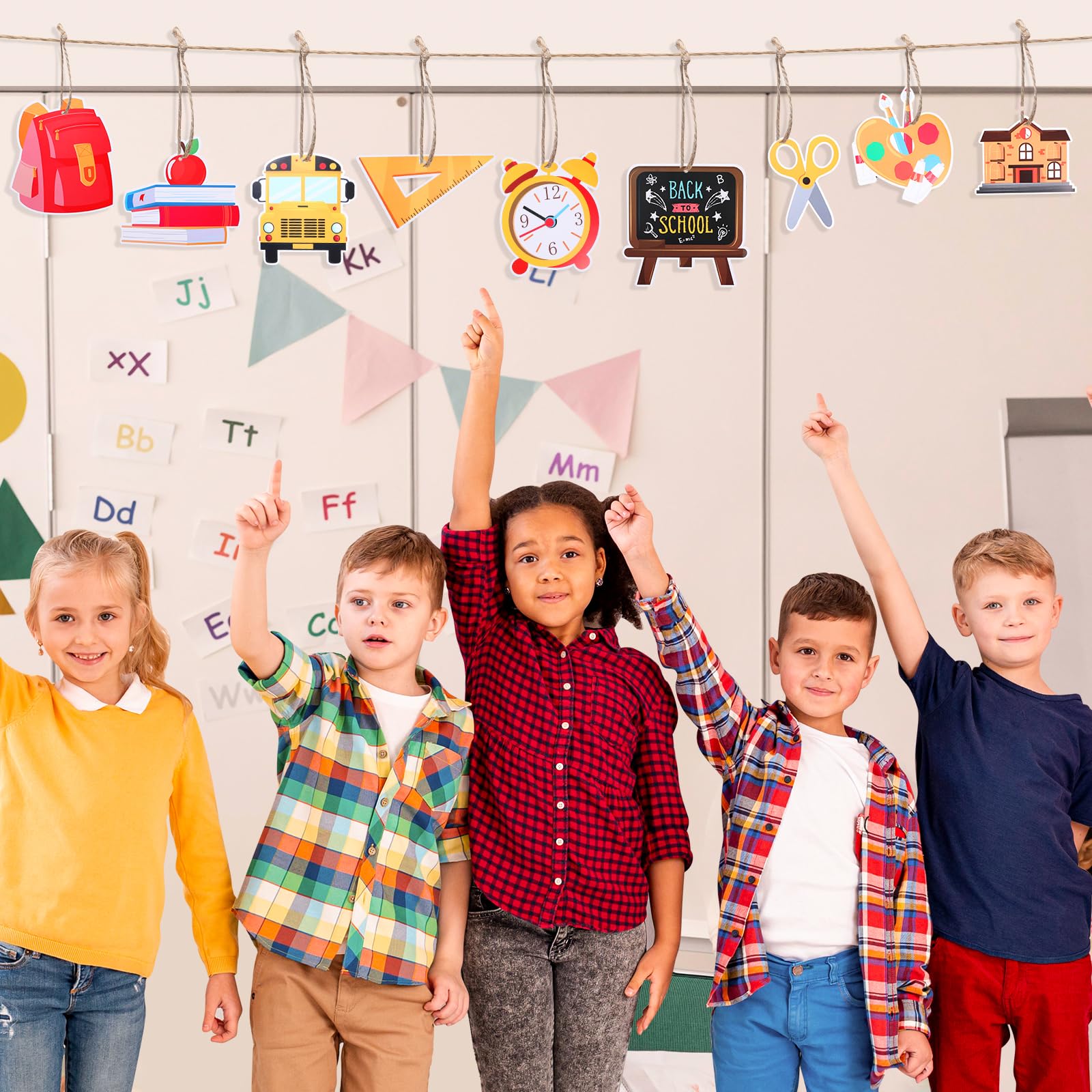 Décorations Suspendues Classe Lot De 4 Décorations à Suspendre Papeta Découpes Suspendues Classe Pour une rentrée scolaire festive, ces guirlandes AIEX sont parfaites ! Le lot comprend 48 éléments en carton épais : des pommes, règles, crayons, bus... Rentrée scolaire 2016-2017 : Les choses à savoir Tout ce que vous avez à faire est de fixer les découpes et les tourbillons en utilisant les accessoires que nous fournissons L’ensemble de nos piques décoratives spécial enfants et écoliers... Impression double face : les décorations à suspendre pour salle de classe sont imprimées des deux côtés pour rendre l'événement plus élégant, elles peuvent être utilisées pour décorer votre bureau, maison, salle de classe ou utilisées comme autocollant mural, accessoires photo et décoration de tableau d'affichage. Nous avons 12 motifs de découpes et 2 pièces pour chacun pour ajouter une touche colorée à vos décorations de fête de rentrée scolaire. Assemblage nécessaire : les décorations de plafond doivent être assemblées par vous-même, mais c'est très simple. Contenu de l'emballage : 24 découpes et 24 tourbillons suspendus inclus.