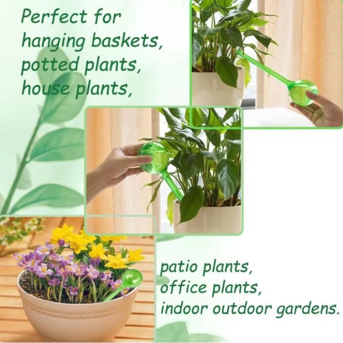 Le matériau poreux empêche les débordements et assure un écoulement d’eau lent. 4 pièces Plastique Boules d'arrosage Dispositifs d'irrigation des Un arrosage constant sans effort, pour des plantes toujours hydratées. Boule D'arrosage Automatique Lot De 4 Grandes Boules D'Arrosage, 27,5 X 8 Cm, Distributeur D'Eau Arrosage Goutte à Goutte Plantes Vous gagnez du temps et de l’espace, idéal pour les amateurs de plantes pressés. La vitesse varie selon l’humidité du sol, garantissant une distribution adaptée. Appareils d'auto-arrosage pour plantes : le kit comprend 4 boules d'irrigation. Ces boules auto-arrosantes sont un moyen simple et décoratif de bien arroser vos fleurs et plantes en pot toute l'année, en particulier en voyage. Ils hydratent jusqu'à deux semaines. Design unique : nos arroseurs en verre sont recouverts d'un revêtement fascinant et irisé qui en fait des œuvres d'art... Vos plantes reçoivent de l’humidité de manière fiable, jour après jour. Insérez simplement l’adaptateur et la bille dans le sol. Design Transparent pour Contrôle Facile]Avec son Design Transparent, nos Billes d’Arrosage vous permettent de suivre en temps réel le niveau d’eau. Vous savez exactement quand recharger, assurant un arrosage optimal et améliorant la santé de vos plantes 【Utilisation Simplifiée, Efficacité Incontournable】Facile à utiliser ! Vous savez exactement quand recharger, assurant un arrosage optimal et améliorant la santé de vos plantes. Remplie d’eau, celle-ci s’évacue progressivement et uniformément via le billeton poreux. Ainsi, arroser devient un jeu d’enfant ! 【Multifonction, Grand Spectre d’Applications】Ce Système d’Arrosage Automatique n’est pas qu’un outil : c’est un assistant de soin des plantes intérieures polyvalent !